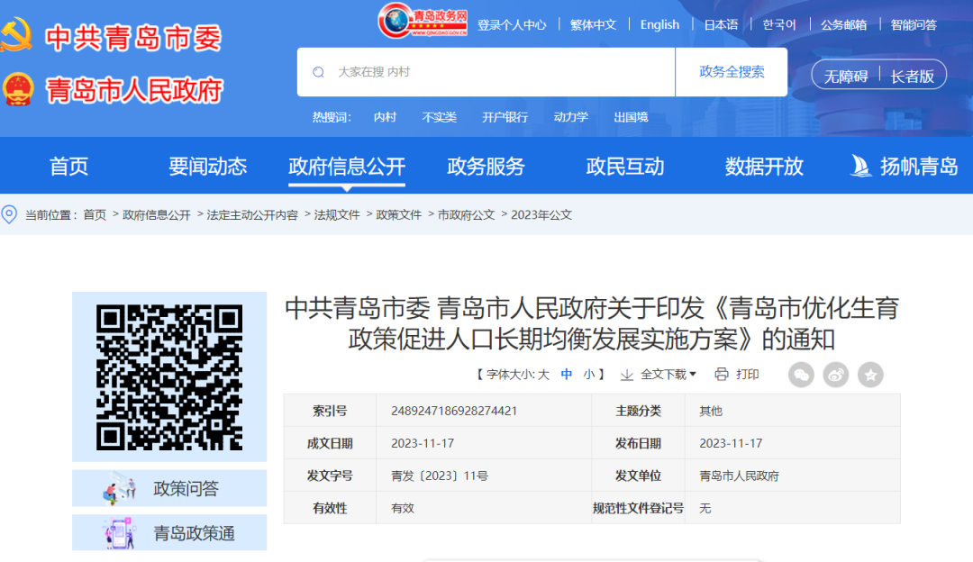 青岛市优化生育政策