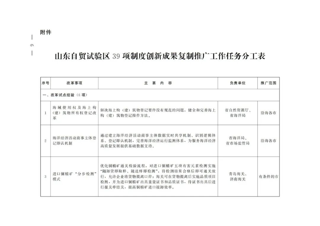 建设自由贸易试验区(以下简称自贸试验区)是党中央在新时代推进改革开放的重要战略举措。中国(山东)自由贸易试验区(以下简称山东自贸试验区)积极贯彻落实党中央、国务院决策部署,在省委、省政府坚强领导下,解放思想、守正创新,立足自身功能定位和特色特点,全力推进制度创新实践,新形成了39项制度创新成果,将在全省复制推广。经省政府同意,现就有关事项通知如下: