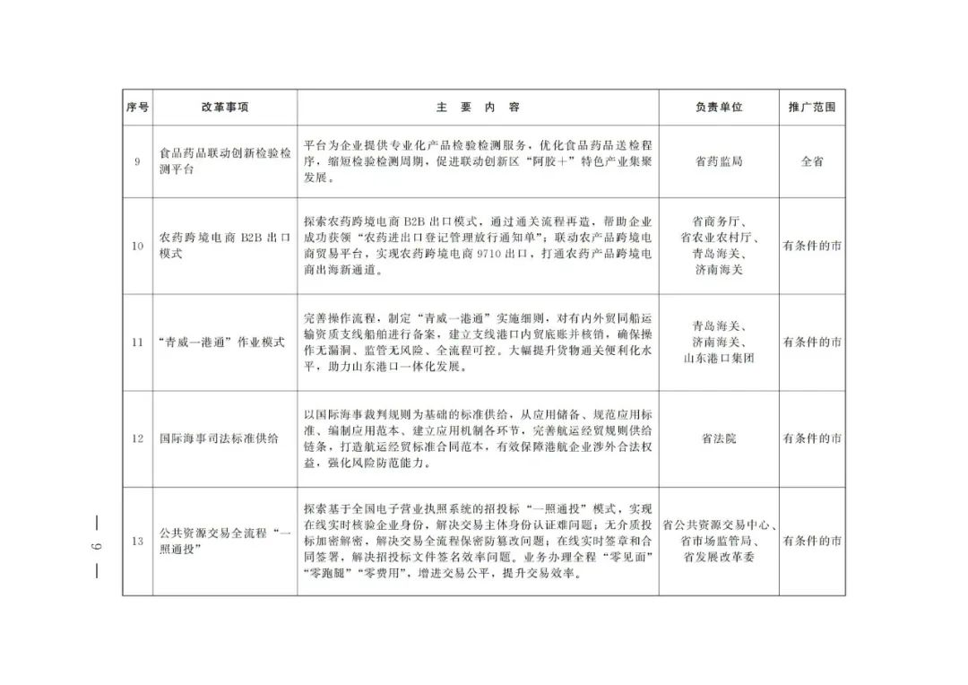 5.区域联动创新发展领域(3项):食品药品联动创新检验检测平台、农药跨境电商B2B出口模式、“青威一港通”作业模式。