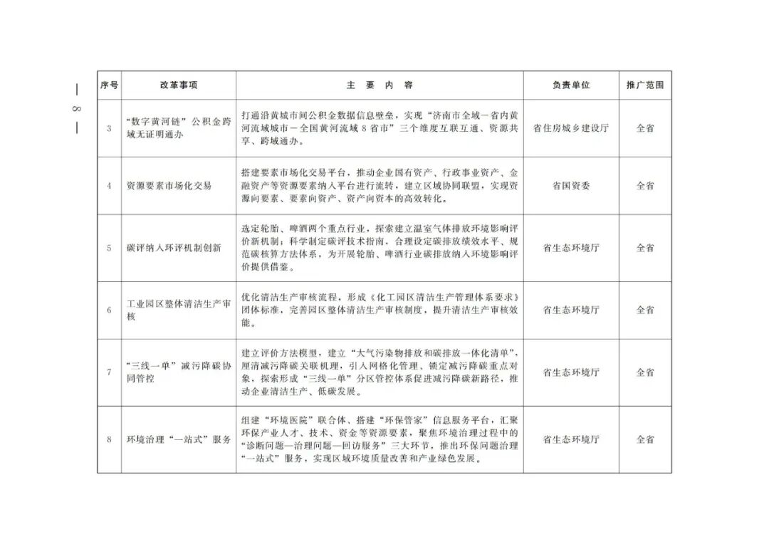 4.绿色低碳领域(4项):碳评纳入环评机制创新、工业园区整体清洁生产审核、“三线一单”减污降碳协同管控、环境治理“一站式”服务。