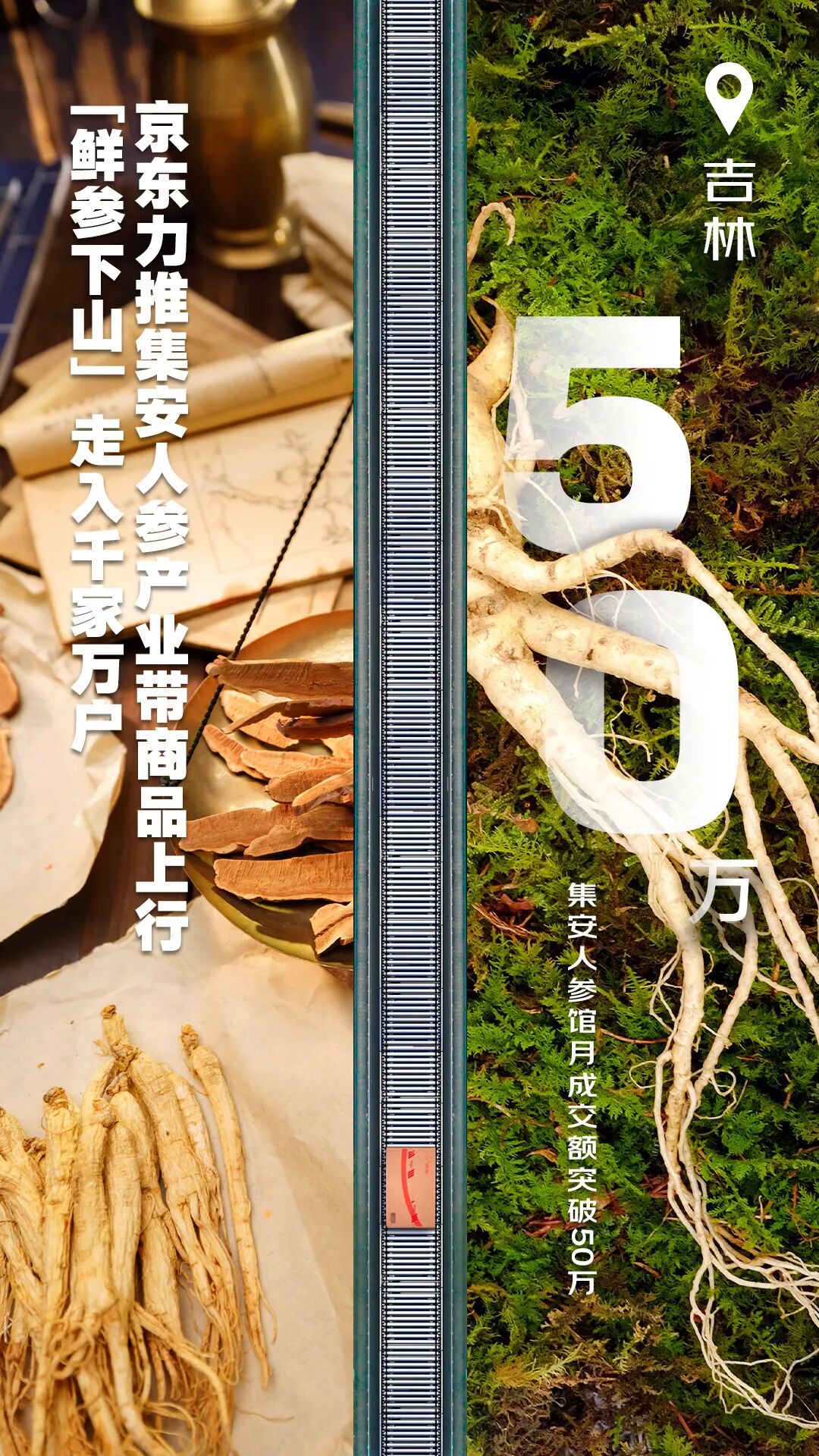 京东健康力推集安人参产业带商品上行,目前已开设集安人参线上店铺22家,其中,集安人参馆单月成交额已达到50万。9月,京东健康作为集安市人民政府官方授权的唯一线上渠道,结合当地传统野山参节,发起首届“鲜参下山”活动,助力长白山深处的人参走入千家万户。
