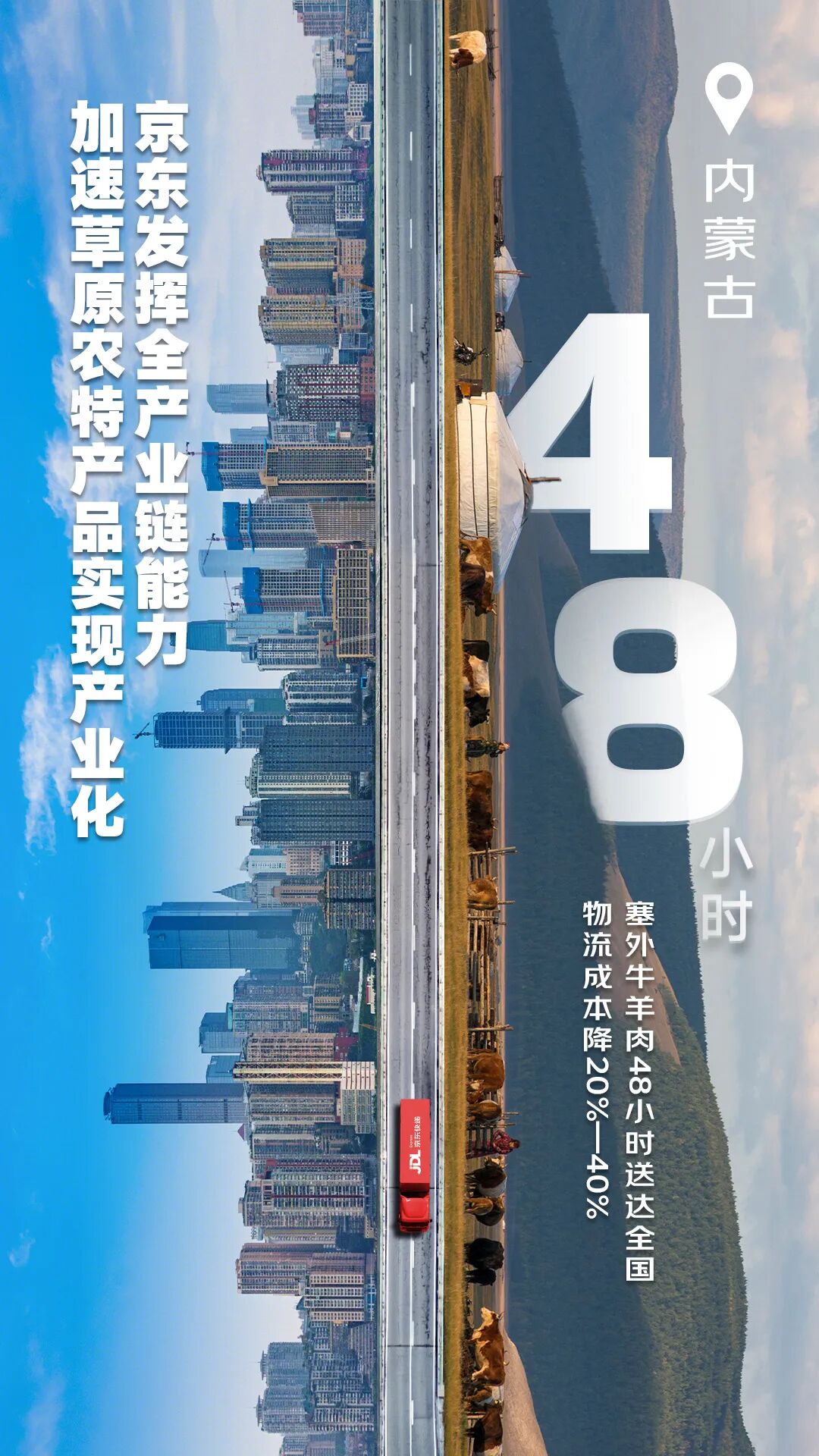 呼和浩特21万平方米的智能仓储园区、乌兰察布的万益云仓……京东物流为农畜产品上行搭建草原供应链“新基建”,产自巴彦淖尔的“草原宏宝”羊肉进入京东物流产地仓后,48小时送达全国、物流成本降低20%-40%。