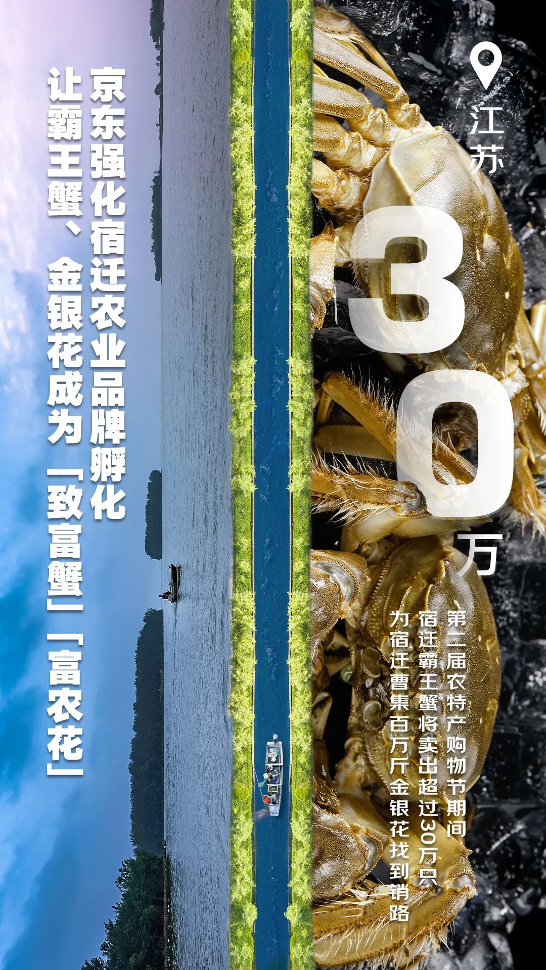 京东超市助力当地打造区域公共品牌“宿有千香·霸王蟹”,联合共建产业基地36个,带动45个经济薄弱村、1000余个低收入农户在家门口就业,开辟了一条“电商+产业+基地+农户”的增收富民新路径。第二届农特产购物节期间,宿迁霸王蟹预计卖出超过30万只。