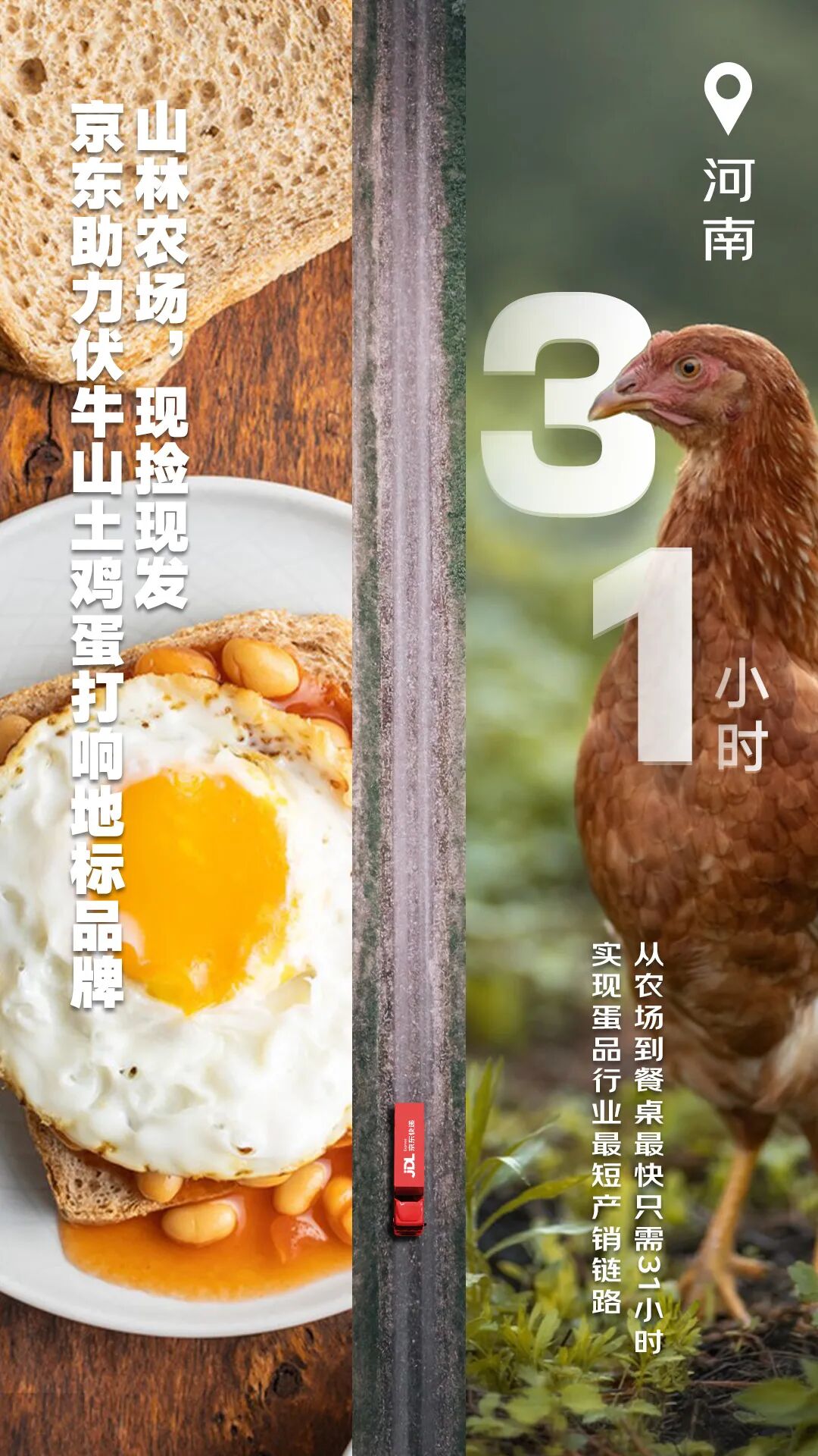 京东自有品牌“惠寻”携手南阳伏牛山农场,减除了鸡蛋流通中的仓储和转运环节,实现蛋品行业最短产销链路。现捡现发的土鸡蛋,从山林农场到消费者餐桌最快只需要31个小时,打响“伏牛山土鸡蛋”地标品牌。