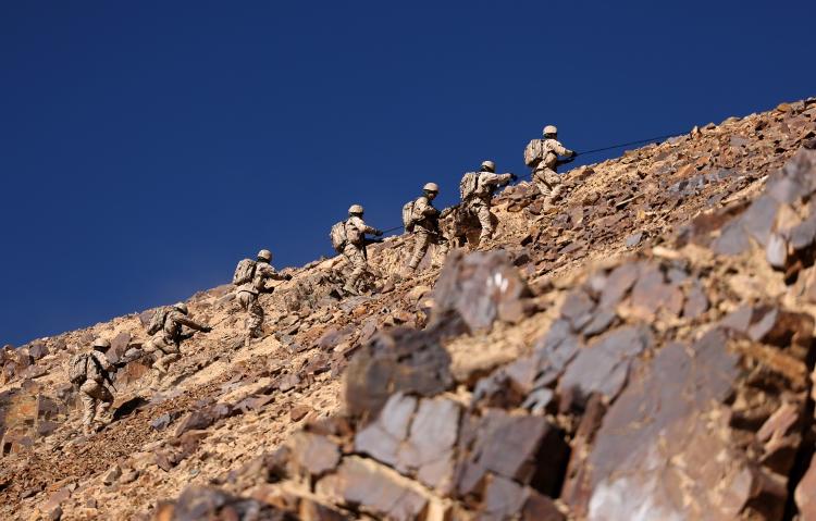 1月2日,新疆军区某团组织侦察班组开展山地攀登训练。