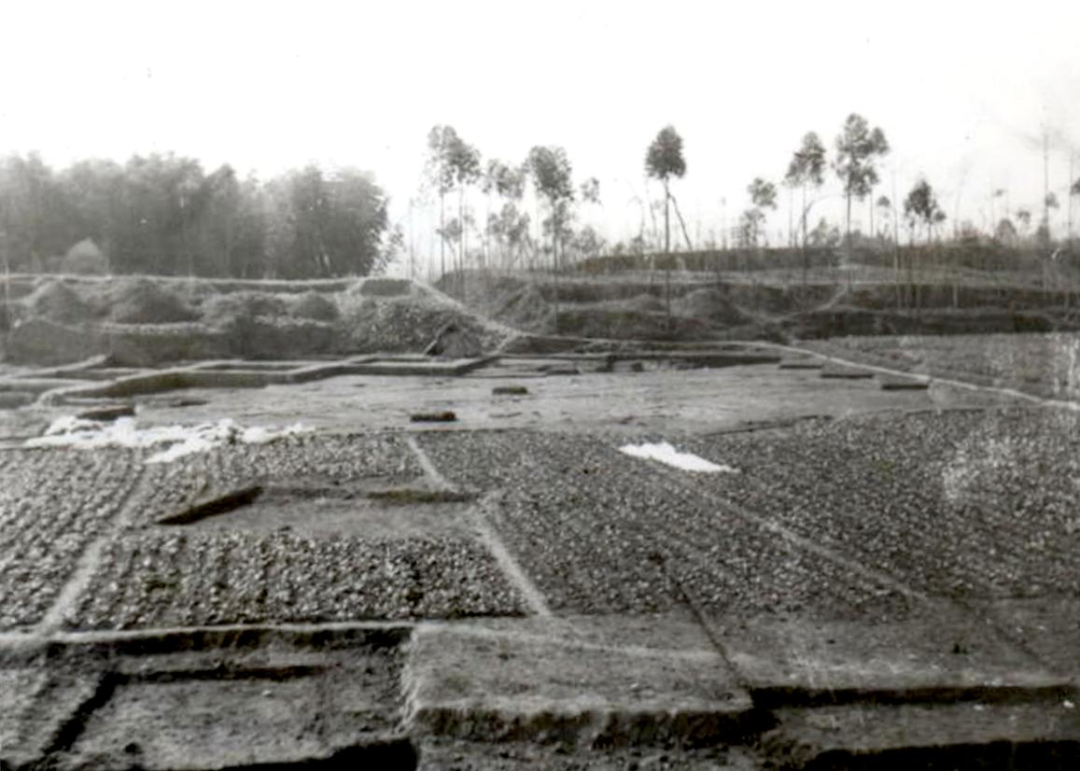 三星堆地点城墙中段局部(由东向西摄,1981年)。图据三星堆博物馆