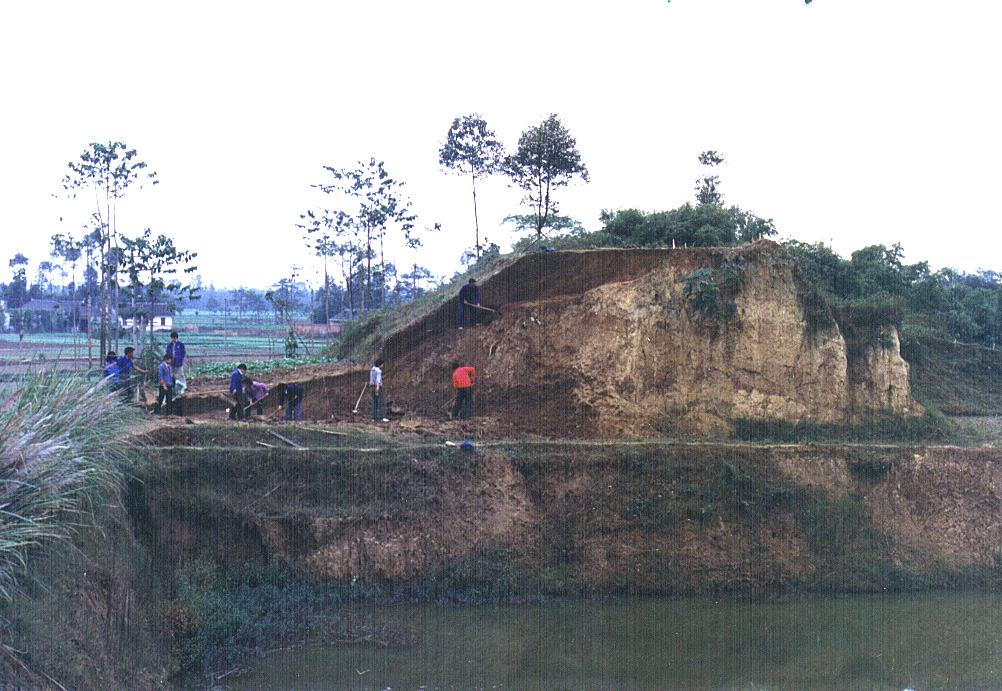 1999年发掘月亮湾城墙探方剖面(由西向东摄)。图据三星堆博物馆