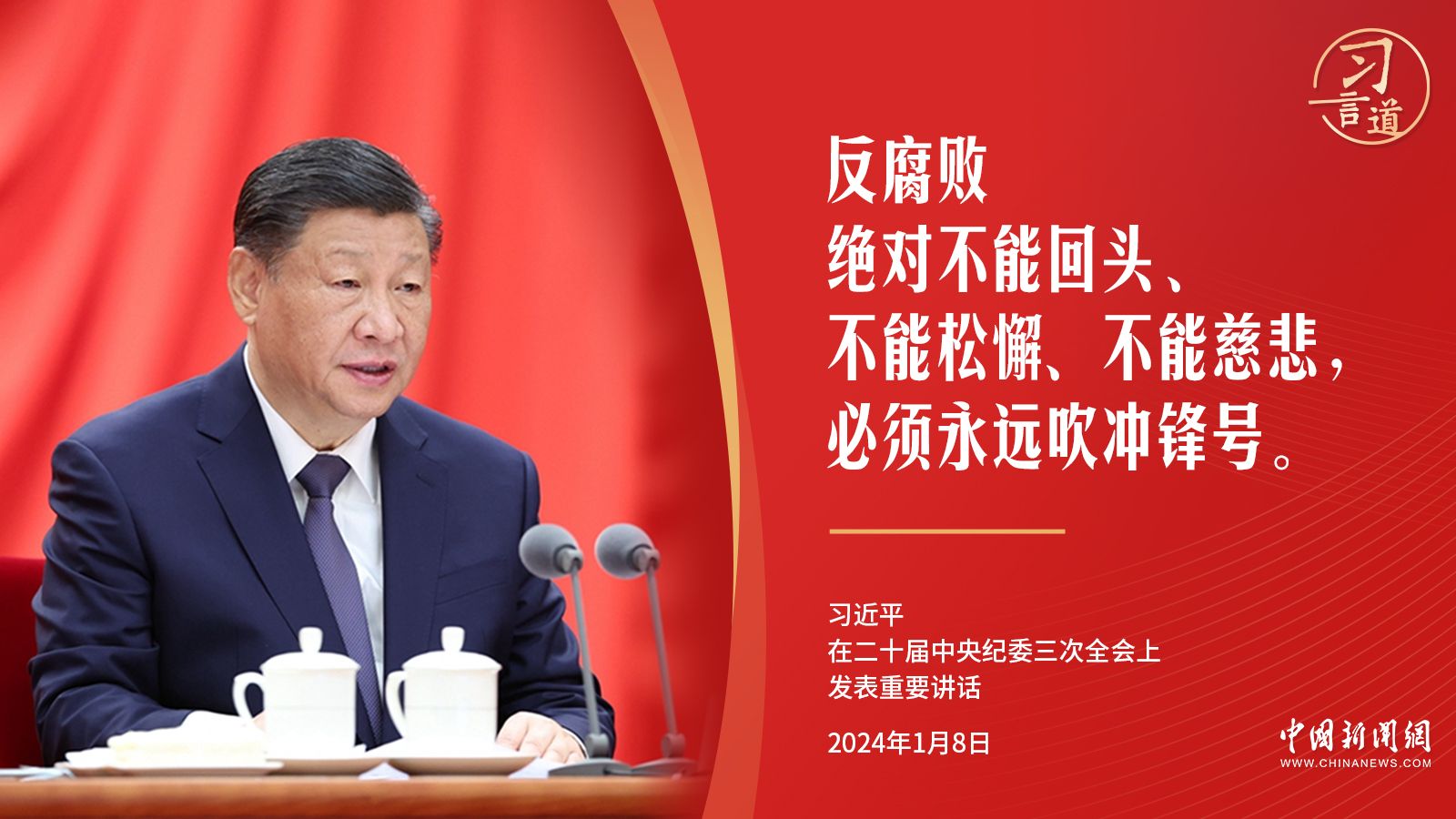 “反腐败绝对不能回头、不能松懈、不能慈悲,必须永远吹冲锋号。”