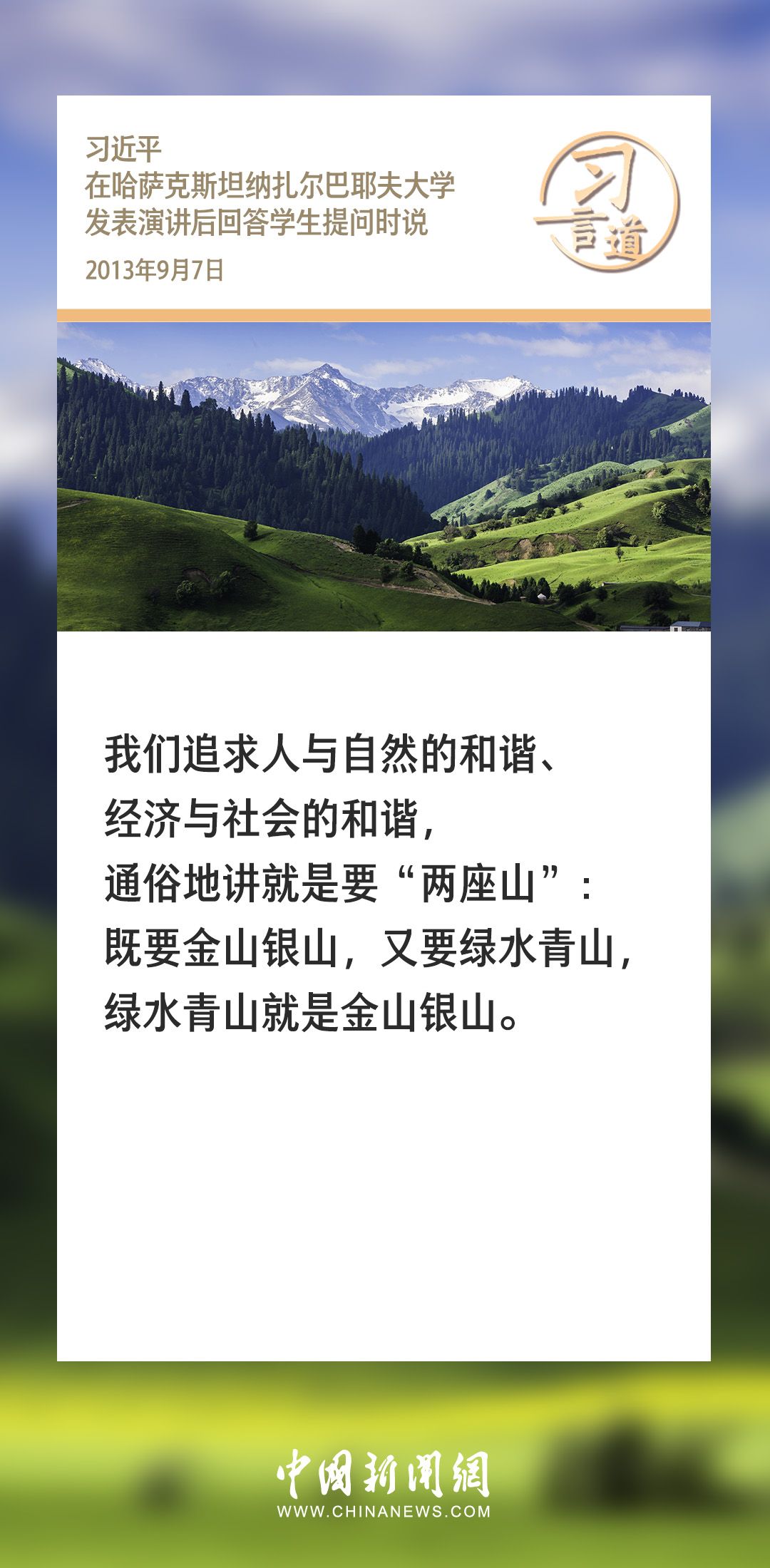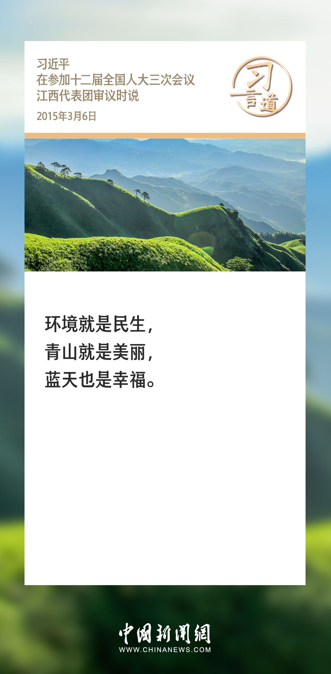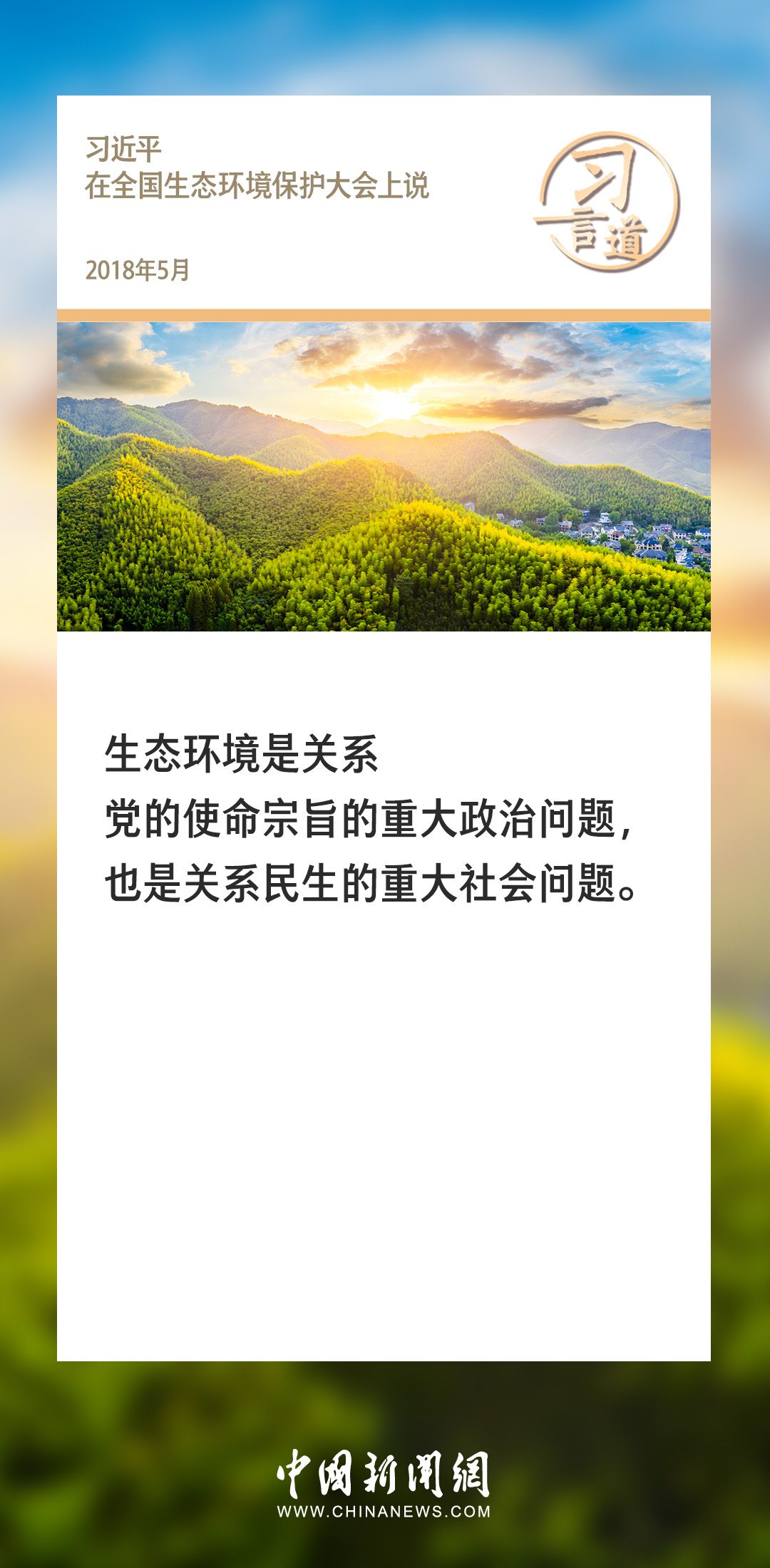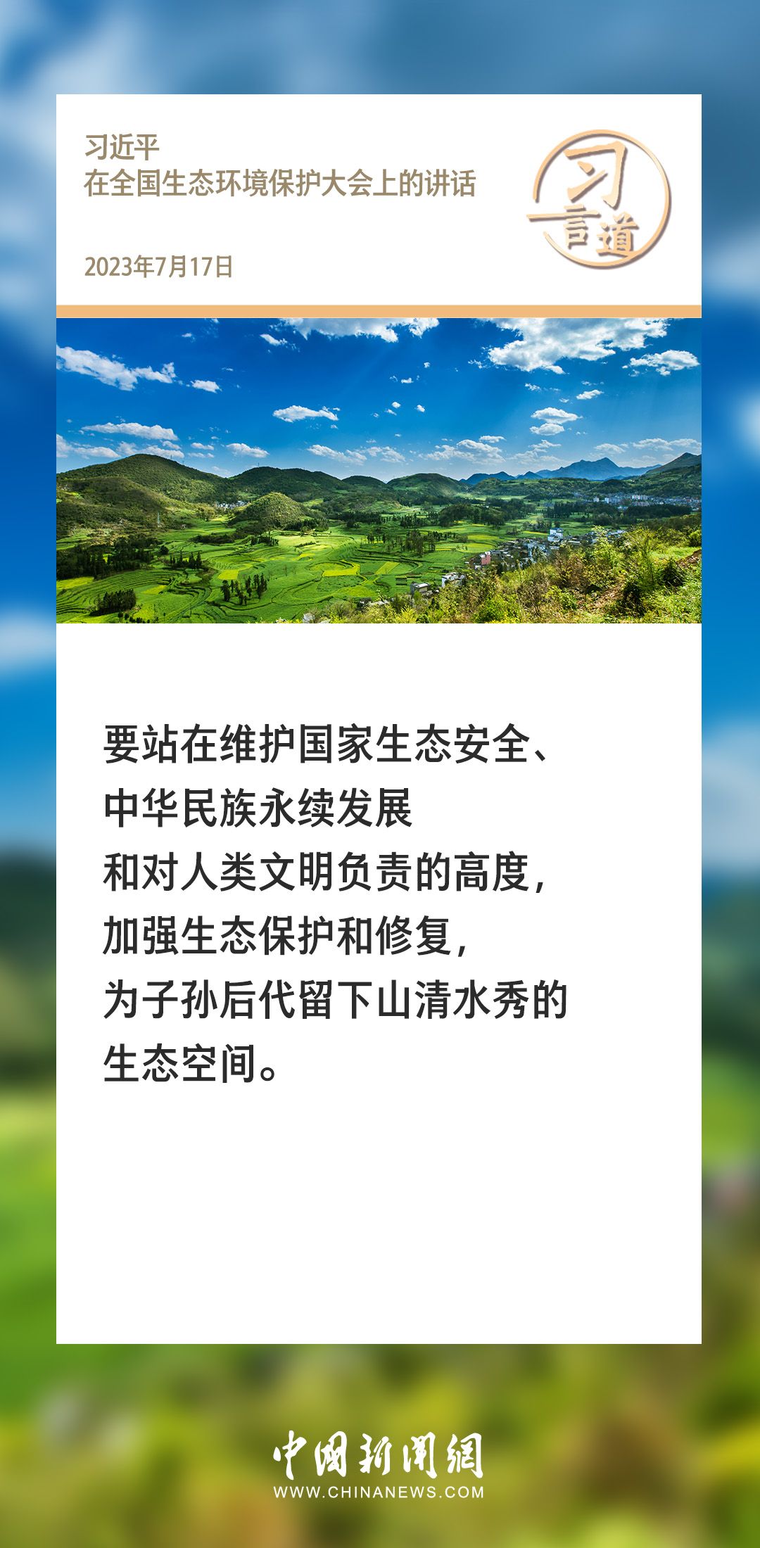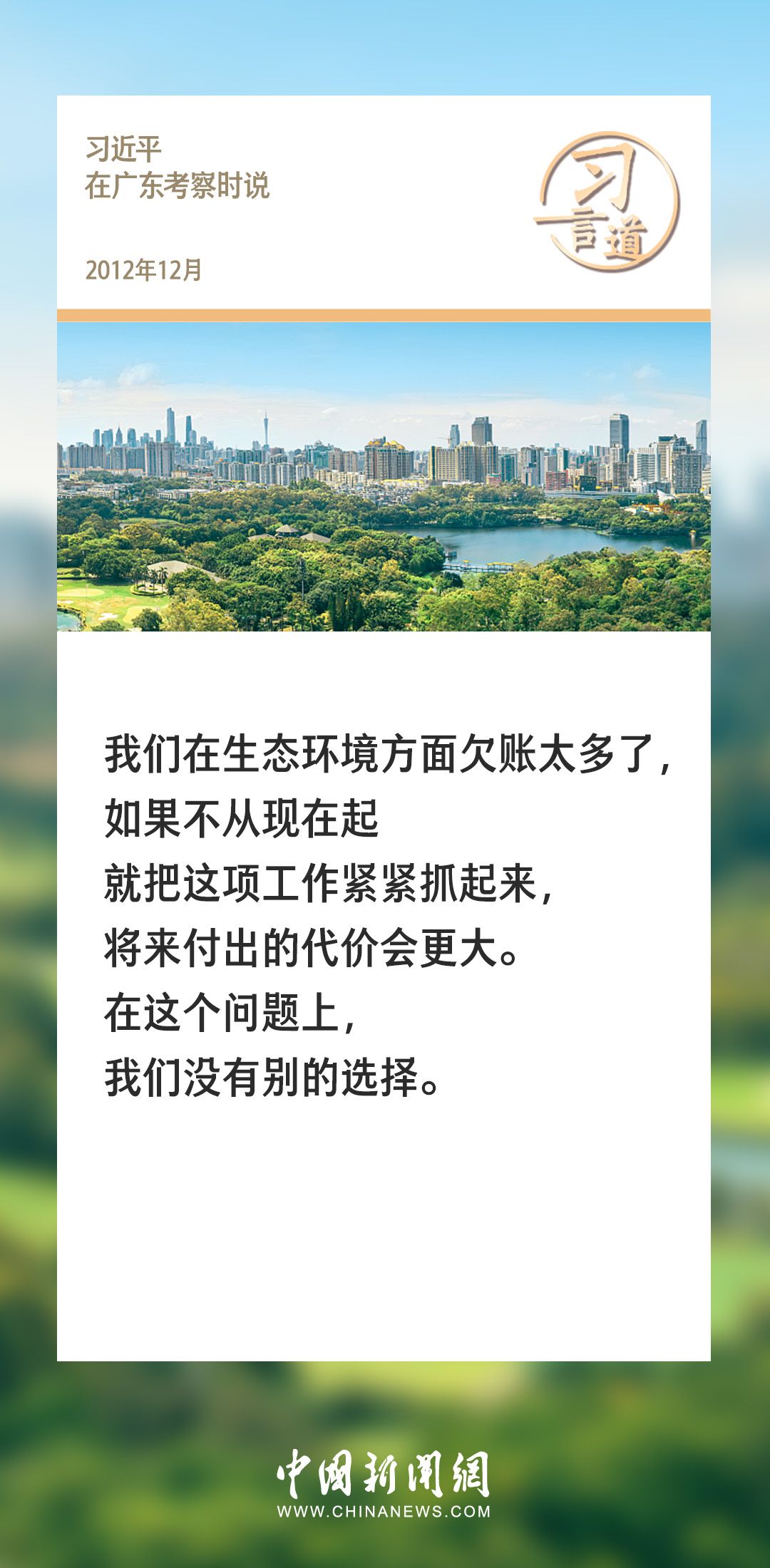 习言道|在这个问题上,我们没有别的选择 2024-01-13 21:22 0 生态文明建设是关系中华民族永续发展的根本大计。党的十八大以来,习近平总书记就生态文明建设发表过一系列重要论述,诸多“金句”深入人心。 来源:中国新闻网 责任编辑:李赛男