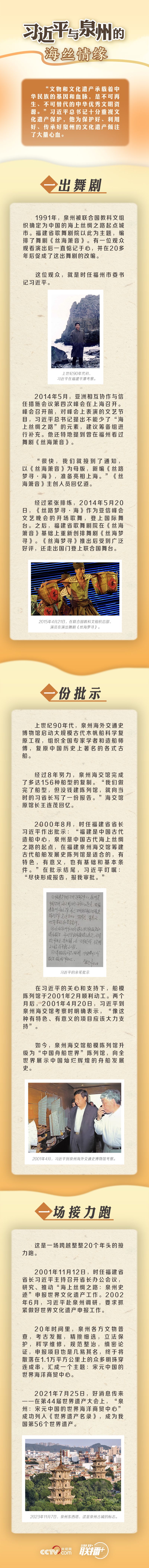 联播+|习近平与泉州的海丝情缘 2024-01-29 20:40 0 联播+ 作为联合国教科文组织认定的海上丝绸之路起点,福建泉州向海而兴,先民奋楫远航留下的文化遗产至今仍熠熠生辉。为保护好这座海丝古城的文脉,习近平总书记倾注了很多心血。央视网《联播+》与您一起了解。 来源:央视网 责任编辑:王海山