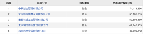 持有药明康德最多的前五大基金公司,分别是中欧、交银施罗德、景顺长城、工银瑞信和易方达。