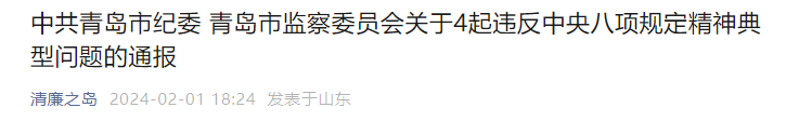 春节将至,落实中央八项规定精神必须坚守节点、寸步不让。为进一步严明纪律要求,强化对广大党员干部的警示教育,现将4起违反中央八项规定精神典型问题通报如下。