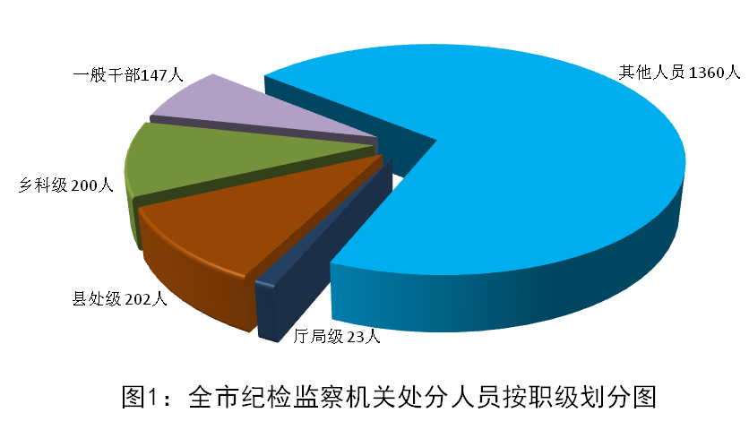 2023年,全市纪检监察机关共接收信访举报6301件次,其中检举控告类信访举报1947件次。处置问题线索6641件,其中谈话函询939件。立案2004件,其中立案市管干部30人、厅局级干部14人、县处级干部197人、乡科级干部209人;立案现任或原任村党支部书记、村委会主任184人。处分1932人,其中党纪处分1766人、政务处分304人;处分厅局级干部23人,县处级干部202人,乡科级干部200人,一般干部147人,农村、企业等其他人员1360人。