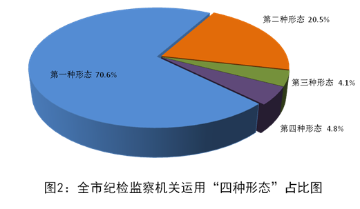 2023年,全市纪检监察机关运用“四种形态”批评教育和处理共6684人次。其中,运用第一种形态批评教育和处理4721人次,占总人次的70.6%;运用第二种形态处理1367人次,占20.5%;运用第三种形态处理272人次,占4.1%;运用第四种形态处理324人次,占4.8%。