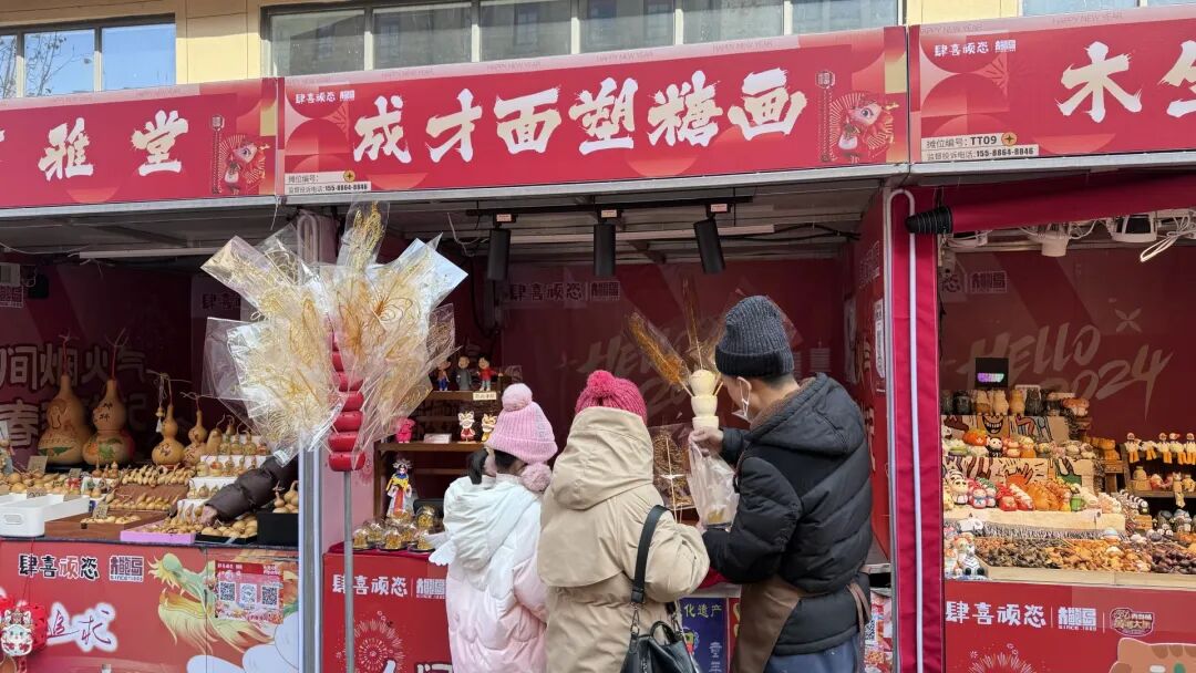 穿汉服、赏花灯、画年画……各项非遗文化以更为生活化的场景,更具烟火气的消费方式,融入新春活动当中。面人、糖画、绳艺、扎染等老手艺化身文化商品,让消费者在“零距离”互动体验中真实地感受到非遗文化的特别魅力。