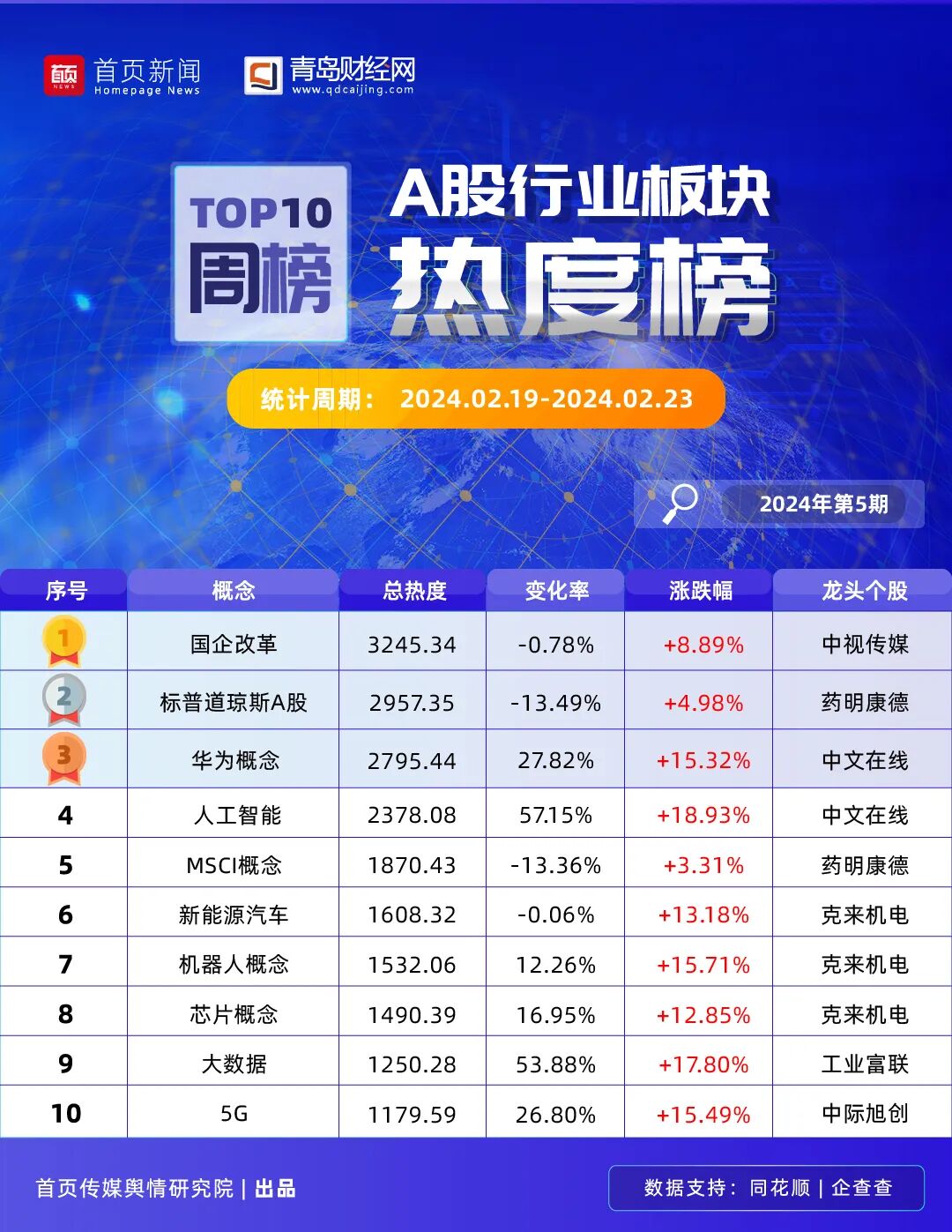 A股行业板块一周热度榜|人工智能板块涨幅居前