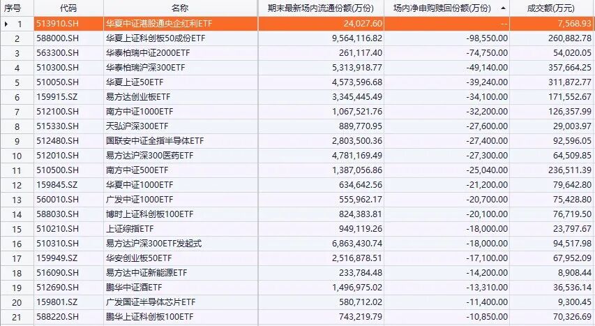 2月29日沪深两市ETF净赎回TOP20 数据来源:东方财富Choice