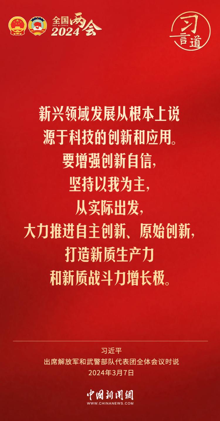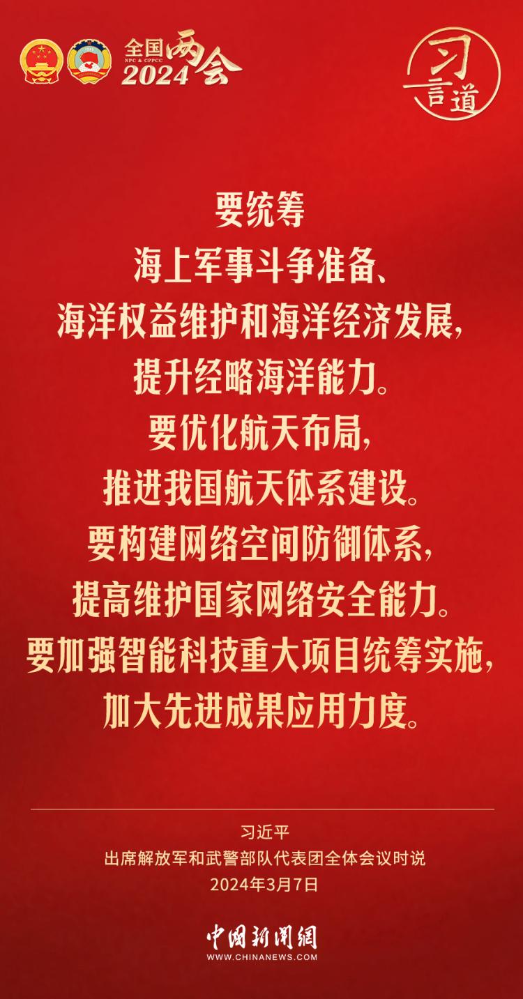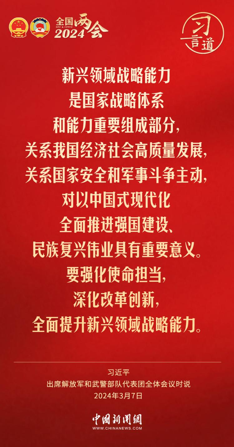 习言道丨全面提升新兴领域战略能力 2024-03-10 12:11 0 中共中央总书记、国家主席、中央军委主席习近平7日下午出席十四届全国人大二次会议解放军和武警部队代表团全体会议,习近平强调—— 来源:中国新闻网 责任编辑:王海山