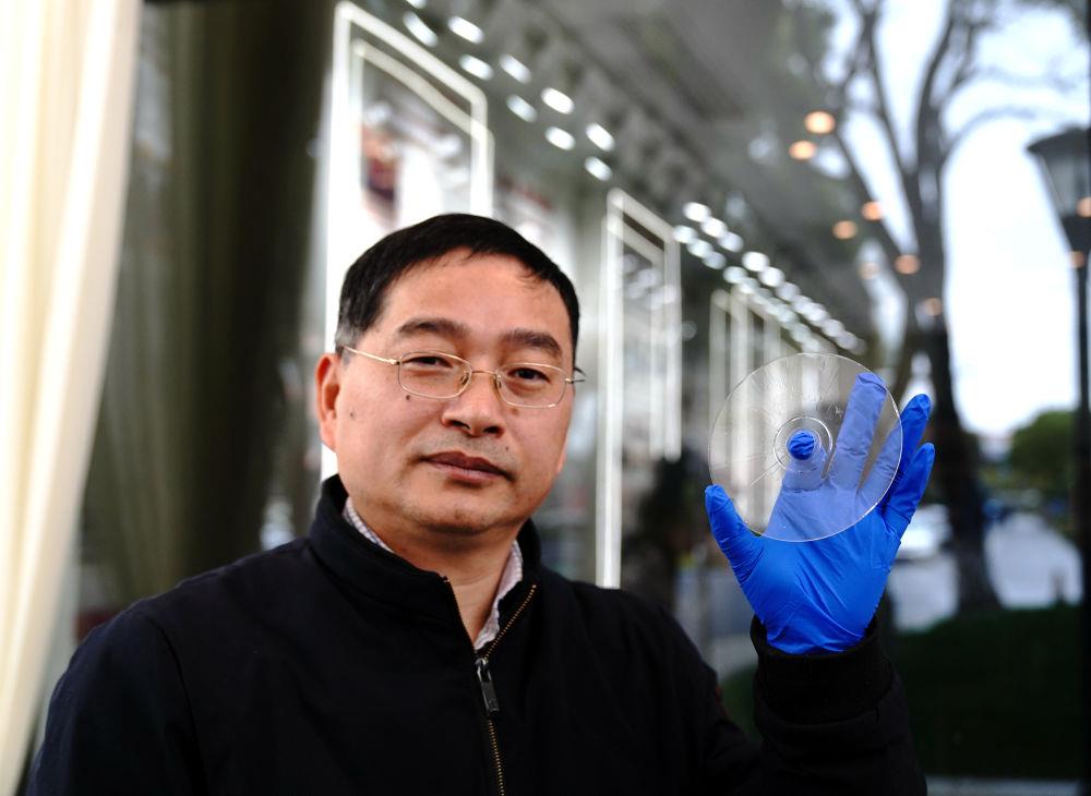 △2024年2月21日,上海光机所阮昊研究员展示“超级光盘”。