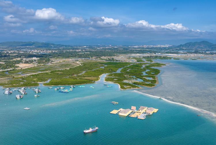 △海南陵水红树林国家湿地公园。红树林素有“海岸卫士、鸟类天堂、鱼虾粮仓”的美誉,在净化海水、防风消浪、维持生物多样性、固碳储碳等方面发挥着极为重要的作用。