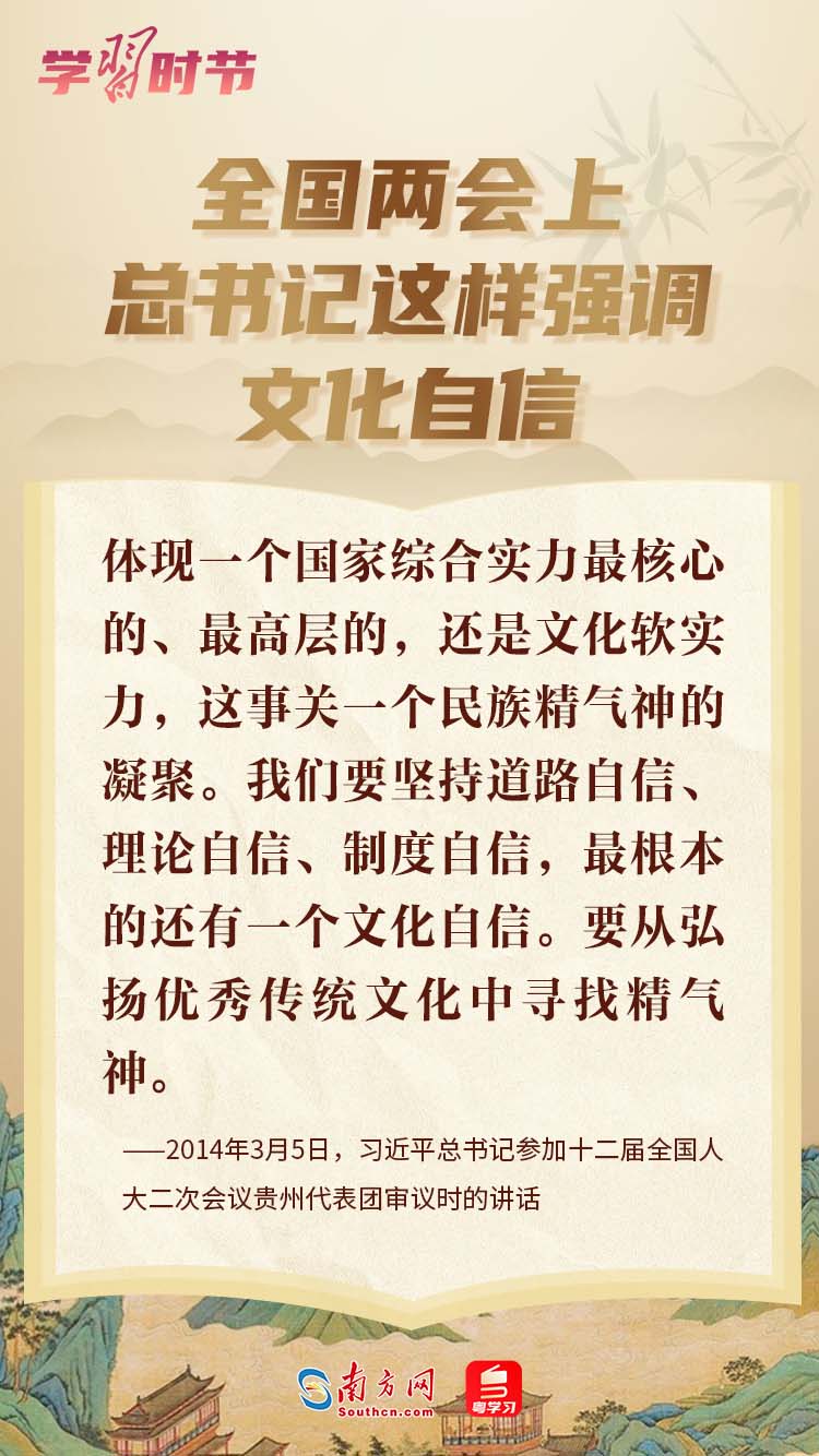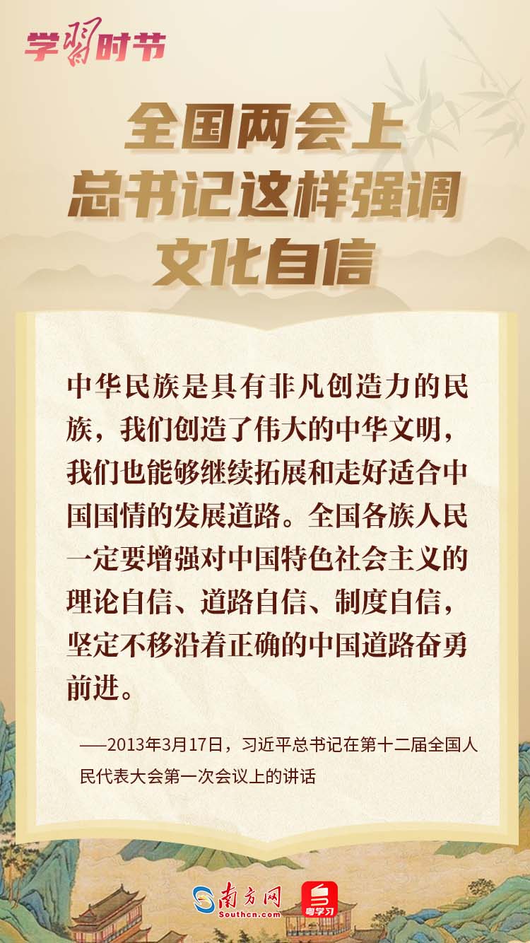 今年政府工作报告提出“深入学习贯彻习近平文化思想”。“坚定文化自信”“大力提升国家文化软实力”“建设社会主义文化强国、不断铸就中华文化新辉煌”……党的十八大以来,习近平总书记在全国两会上就文化建设发表一系列重要讲话,为实现中华民族伟大复兴注入强大精神动力。