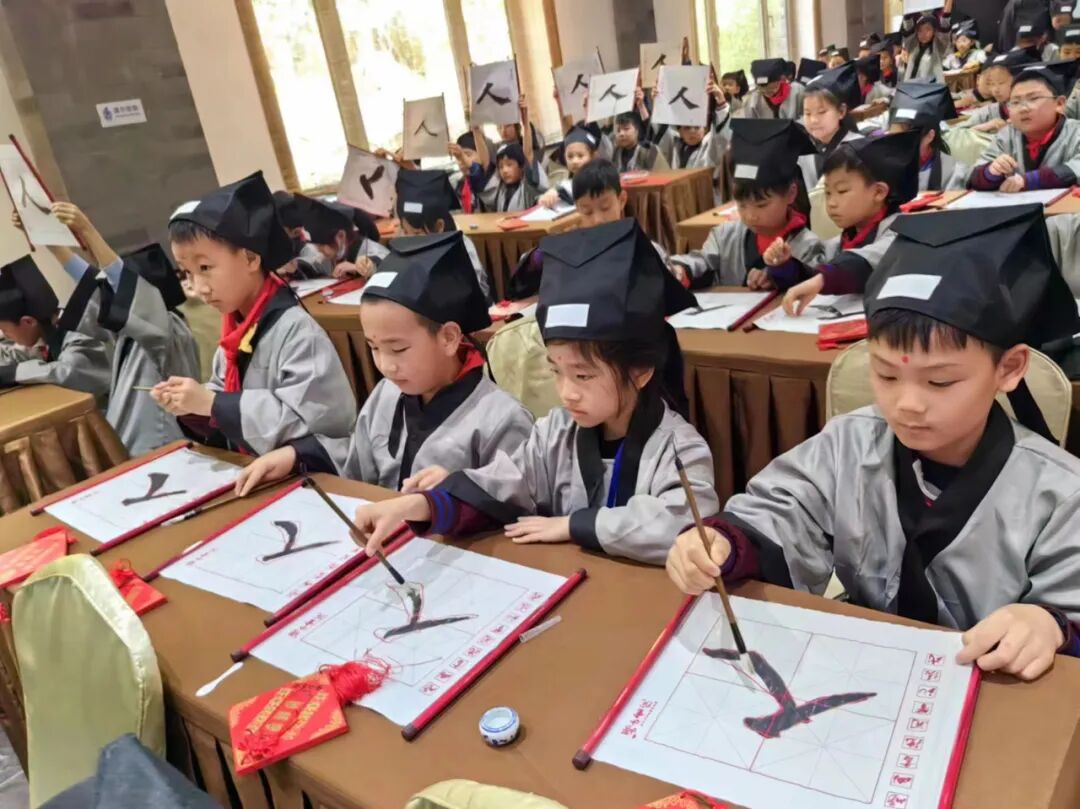 启蒙描红,一撇一捺描摹“人”字,学习为人处世的道德准则。
