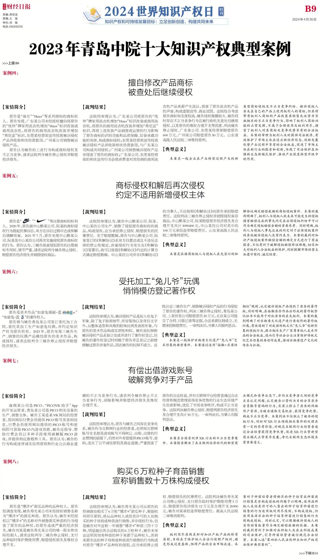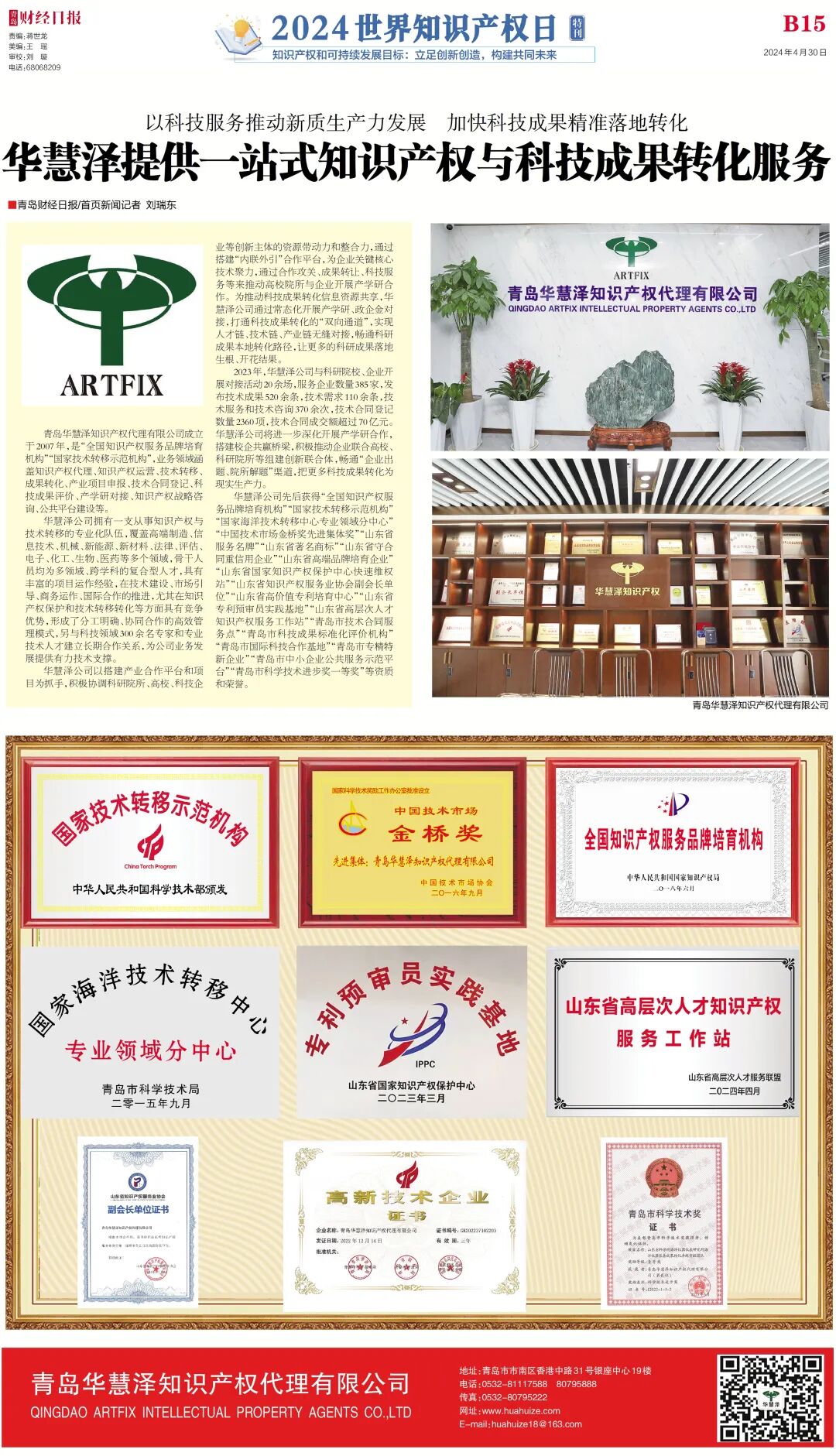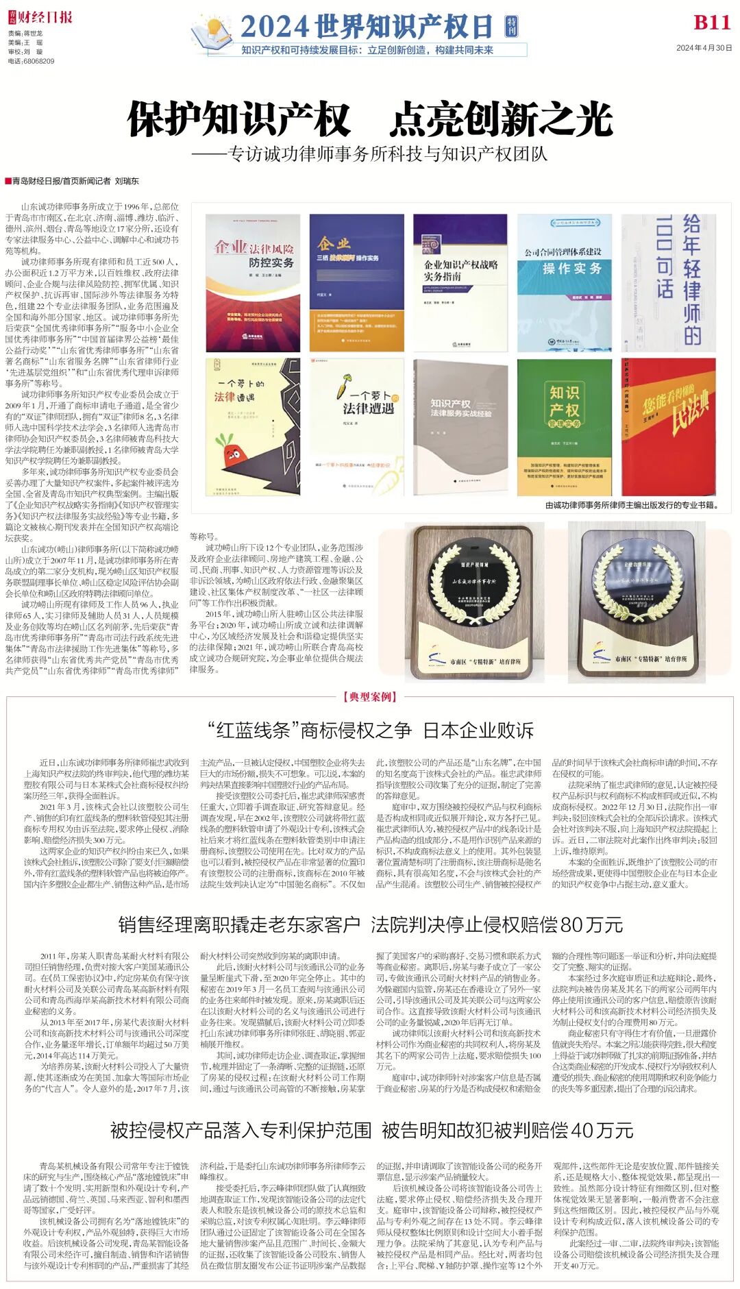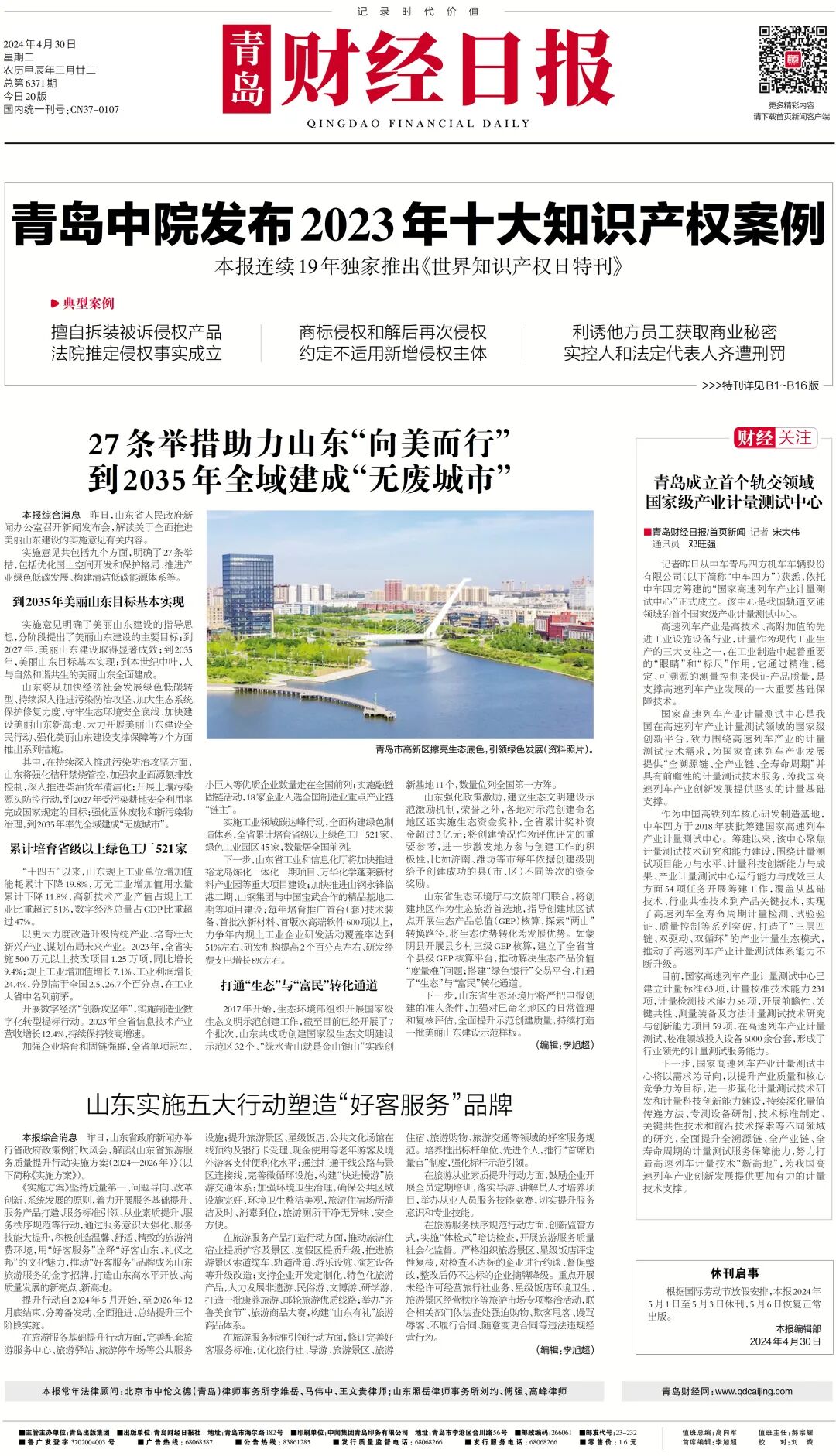 据悉,青岛财经日报与青岛中院自2006年起已连续19年在每年的4月26日前后推出《世界知识产权日特刊》,营造全社会支持创新创造尊重知识产权的良好氛围。