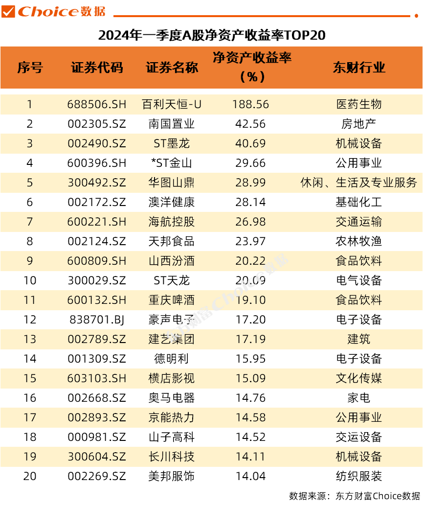 加权净资产收益率方面,排名前三的是百利天恒-U、南国置业、ST墨龙;*ST金山、画图山鼎、澳洋健康、海航控股净资产收益率均超过25%。