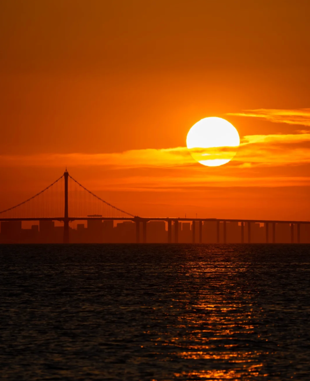当夕阳西下,落日与大桥相映成辉,如果你自驾正好经过胶州湾大桥,可以好好感受一下浪漫青岛的魅力。