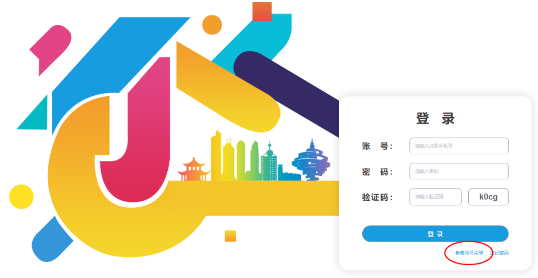 第三步:如下图所示点击右下方参赛账号注册进行信息填写