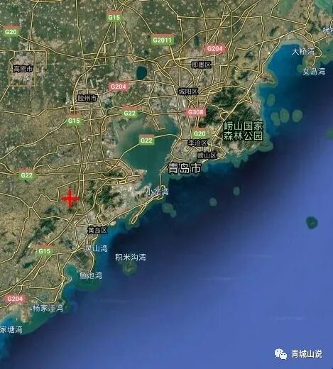 下图是青岛的卫星地图。青岛的海有几个特点,一是海比较深,二是海水比较清,三是海边多礁石、沙滩。