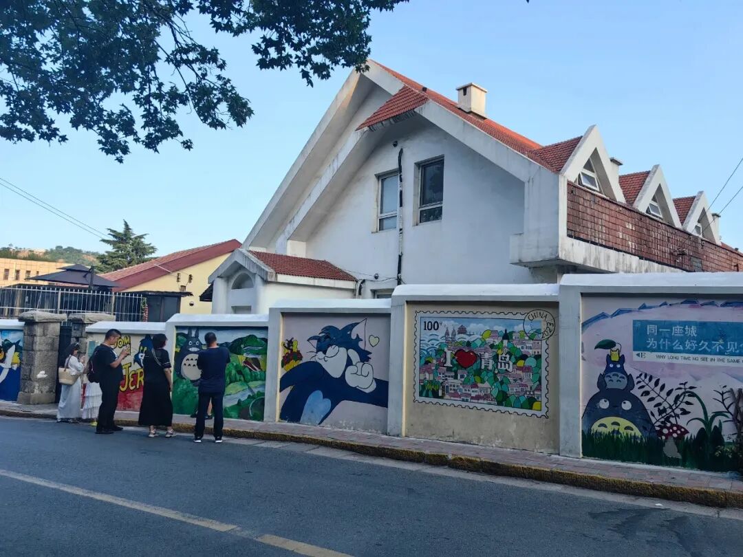网红打卡墙位于大学路和鱼山路的交界处,是青岛市美术馆的外墙,虽然在成名上有一定的偶然性,但更依赖于常年的修葺维护。