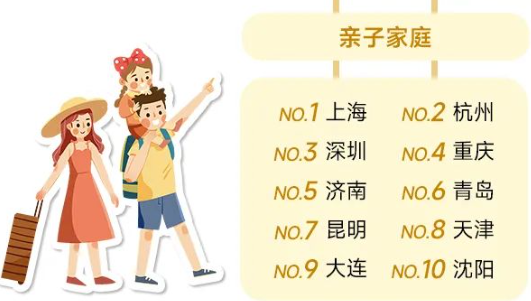 在亲子家庭热门出游目的地中,青岛位列全国第6名: