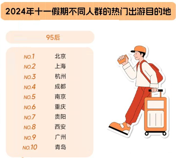 在95后人群热门出游目的地中,青岛位列全国第10:
