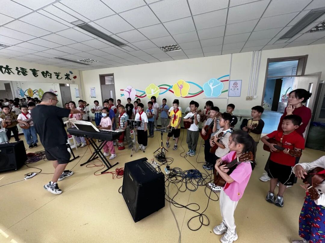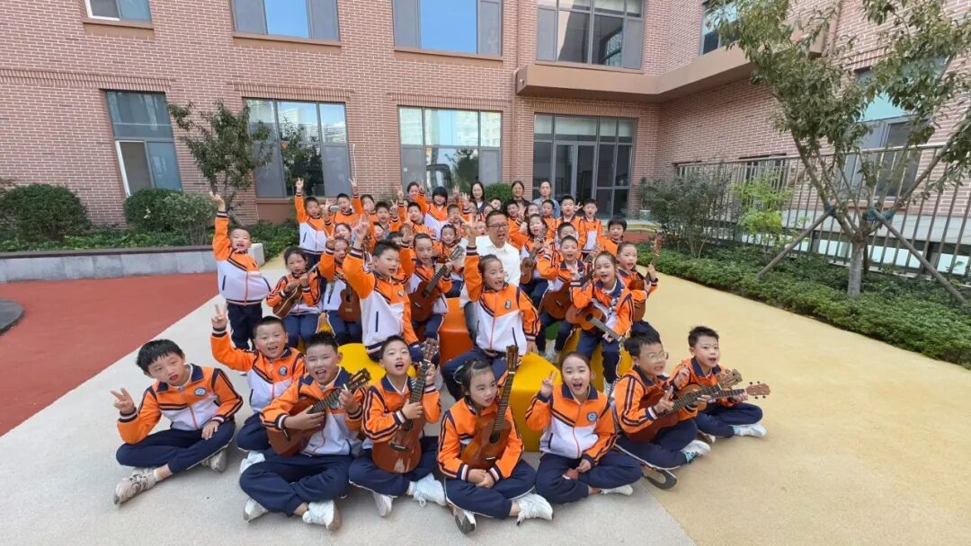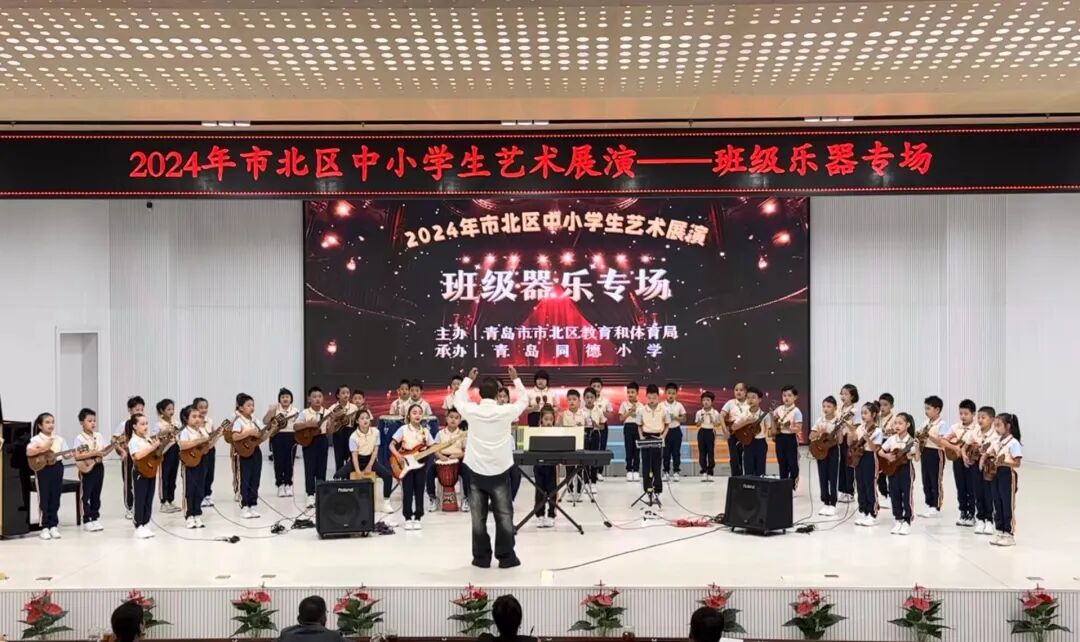 2024年10月8日,在青岛市市北区举办的“2024中小学班级器乐比赛”中,青岛台湛路小学三年级一班在56所学校的激烈角逐中脱颖而出,全体学生带来的尤克里里合奏《勇气大爆发》荣获比赛一等奖第一名,并成功晋级市级比赛。这一振奋人心的成就,不仅展现了同学们卓越的音乐才华和辛勤努力的成果,也体现了学校对艺术教育的高度重视和大力支持。