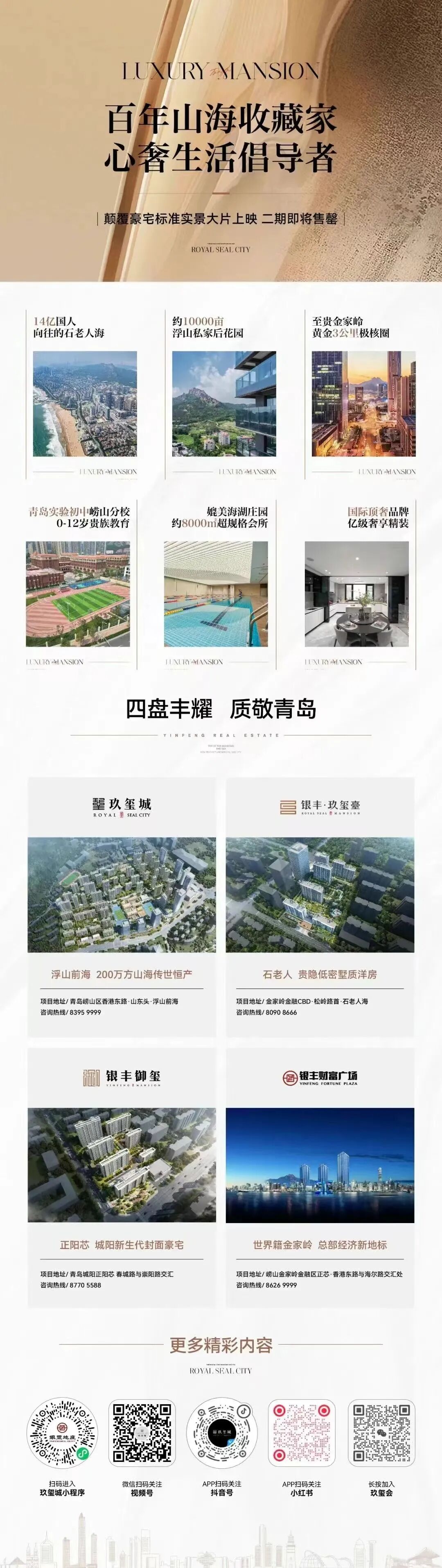 有无会所,会所层次的高低,已经成为判断豪宅高下的重要试金石。走出家门,不出社区的豪宅社交生活,已然成为现代高端人士生活标准,堪比迪拜七星级酒店的会所,包含五泳道室内恒温泳池、全场地篮球场、双羽毛球场、标准健身房等设施,另有涵盖品茗、读书、亲子、睦邻等功能的全龄乐活架空层会所,共计建面约8000㎡的社区多功能空间,为业主呈现身有所健、心有所安、家有所乐、友有所喜的丰盛生活。青岛广播电视台新闻中心的一位朋友现场说:“这样的配置,在青岛乃至整个山东地区都是非常少见的。”