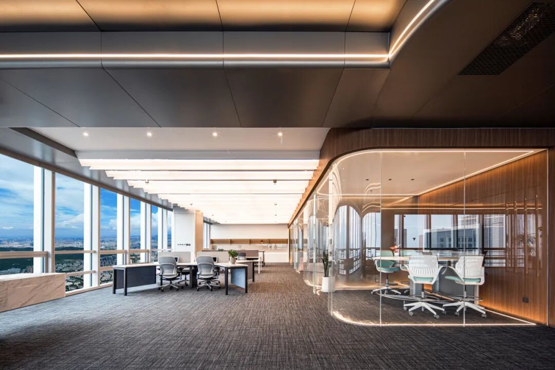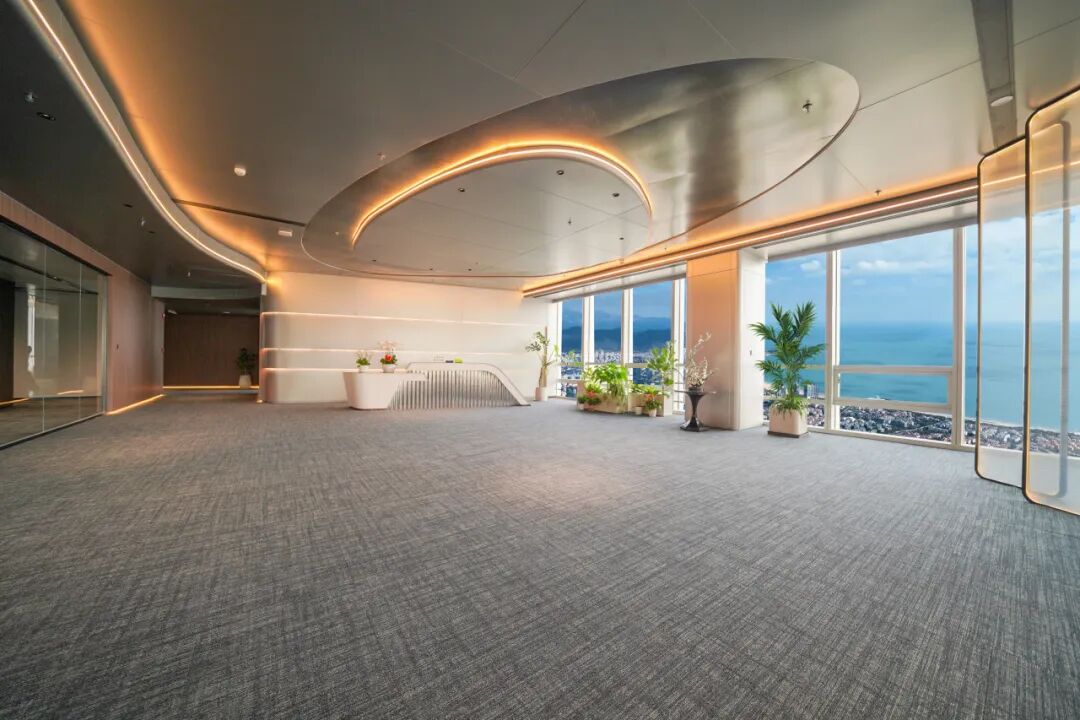 通体玻璃幕墙,水晶宫般挺立在香港路上,与山、海、城通透辉映,约11.2m挑高精装大堂,先发夺人,未来会让进驻企业非常有面子。项目还同步世界顶级标准,在青岛罕见采用了双银LOW-E超白四玻两腔夹胶玻璃,透光率约47%,隔音约40-42dB,充分满足企业私密办公需求。听完介绍,今日头条和凤凰网的朋友们一起讨论着,不住地感叹。