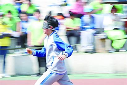 本次运动会上,学校按年龄和年级分了三组、按视力级别分了两组,进行了8个大项目的田径比赛,经过激烈角逐,取得了优异的比赛成绩,特别是去年在省运会上斩获三枚金牌的初一学生王婉,在校运会上再次发威,创造了女子甲组B2级100米学校最好成绩。