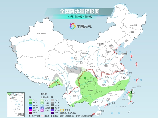 今明天,北方大部仍将维持雨雪稀少的天气格局,南方降水区域略向南转移,广西等地降雨增多。中央气象台预计,今天内蒙古中部和东北部、黑龙江大部、吉林东部和北部、川西高原东部、西藏东北部等地部分地区有小到中雪或雨夹雪,其中,黑龙江南部等地局地有大雪。四川盆地东部、重庆、湖北西南部、湖南、江西中北部、安徽南部、浙江、福建北部、贵州、云南东南部、广西西部和北部、台湾岛等地部分地区有小到中雨,局地有大雨。