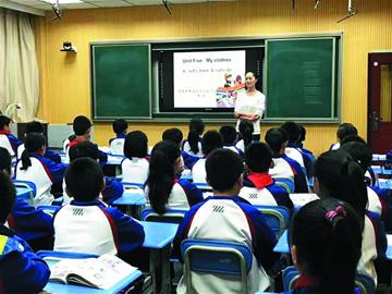 ■黄岛区小学第四联合体联谊校新教师课堂教学比赛日前在太行山路小学举行,图为灵山岛小学英语教师在进行双语课堂教学展示。为促进优质教育资源均衡配置,进一步缩小校际间和城乡差距,黄岛区教体局在义务教育(小学)阶段探索推出“联合体”办学模式。