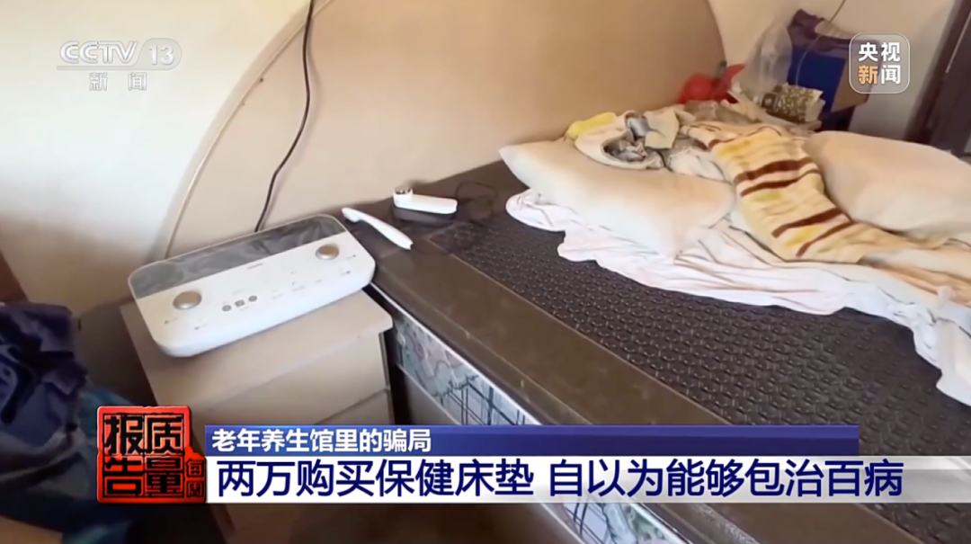 前不久,年近八旬的王老伯突然改变了原来的生活习惯,开始每天早上5点多去一家养生馆听讲座。不久后,他花费2万多元将一款保健床垫买回了家。在他眼中,这个床垫简直是“包治百病”的宝贝。