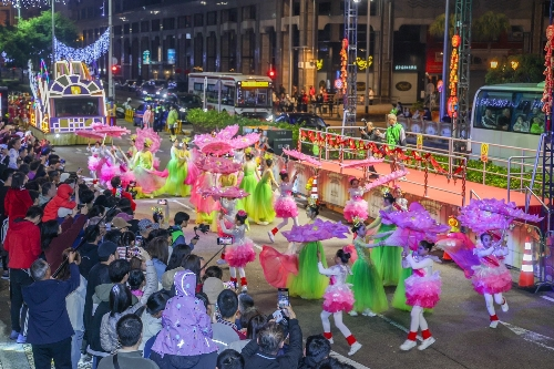 图为花车巡游吸引众多游人观赏拍照. (澳门特区旅游局供图)