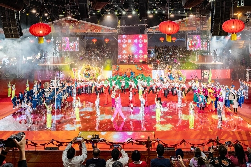 1月31日晚,澳门西湾湖广场,盛装的演员、欢乐的人群、五彩缤纷的花车,伴着喜庆的音乐歌舞、闪烁的灯光银屏、绽放的浪漫烟花,上演了欢乐春节的热烈精彩演出,尽展澳门盛事之都的美好形象。