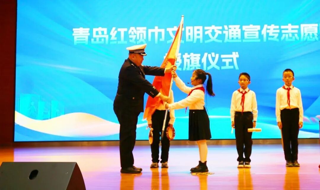 随后,“青岛红领巾文明交通宣传志愿队”正式成立并授旗,小志愿者们将化身交通安全宣传员,带动身边人共守平安。