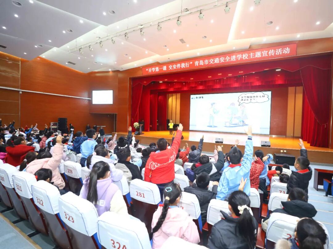 上午10时,启动仪式在青岛广水路小学学术报告厅拉开帷幕。青岛市公安局交警支队领导在致辞中表示,新学期伊始,青岛交警将全面强化学校周边交通隐患排查、护学岗执勤及应急处置,织密学生出行“安全网”。青岛广水路小学校领导在发言中强调,希望学生能发挥“小手拉大手”的作用,将所学的交通安全知识传递给家人和朋友,带动身边的人一起遵守交通法规,共同营造安全、文明的交通环境。活动现场,师生代表共同发出安全倡议,呼吁遵守交通法规、抵制危险行为;广水路小学学生表演的原创节目《交通安全三句半》,以童趣语言传递安全知识,赢得阵阵掌声。