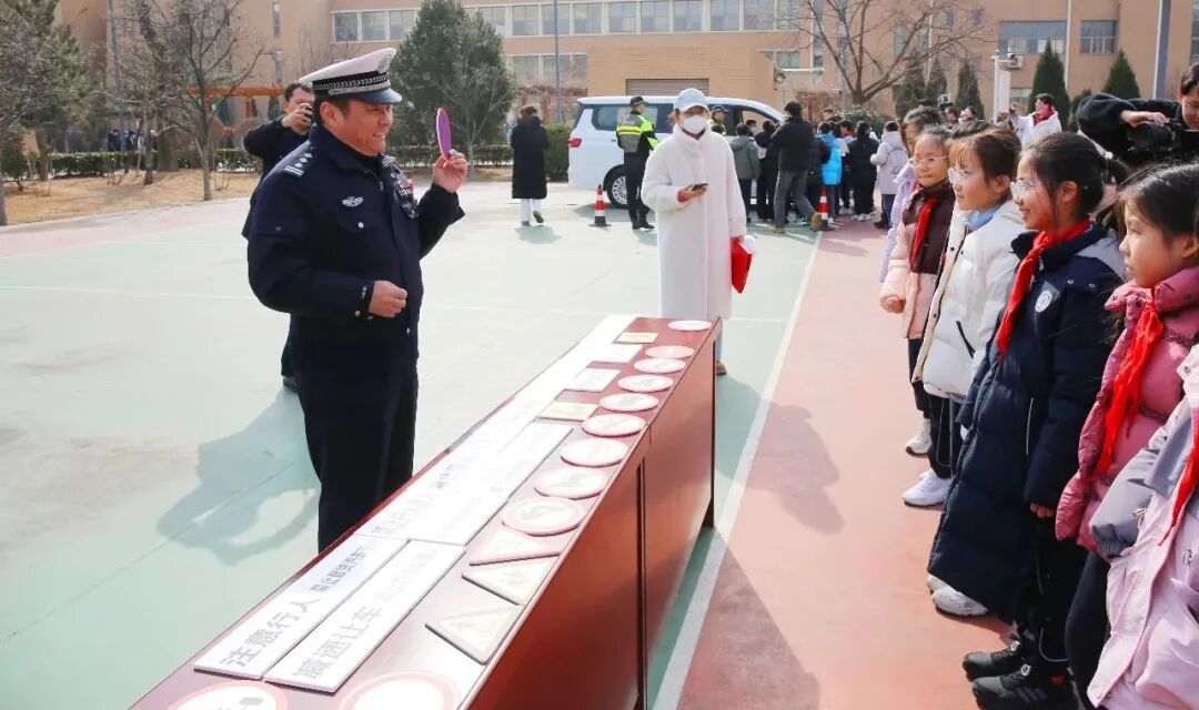 2025年2月14日上午,“开学第一课 交安伴我行”交通安全进学校主题宣传活动启动仪式在青岛广水路小学举行。活动通过交通安全宣讲、师生代表倡议、为文明交通宣传志愿队授旗、现场互动体验等形式,普及交通法律法规,宣传安全出行常识,营造共同保护学生交通安全的良好氛围。