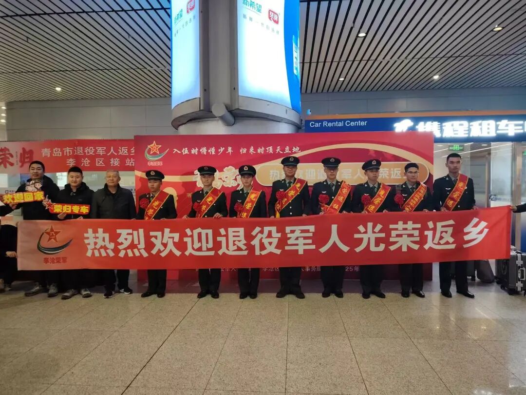 戎装虽退,荣光不减。3月1日起,2025年春季自主就业退役士兵陆续返乡,青岛市退役军人事务局组织各区(市)开展“荣归”系列欢迎活动,在青岛胶东国际机场、青岛火车站、青岛北站、青岛西站等多个交通枢纽及退役军人服务中心(站)设置返乡接待站,为退役军人提供返乡迎接服务,营造“一朝戎装,一生荣光”的浓厚氛围。
