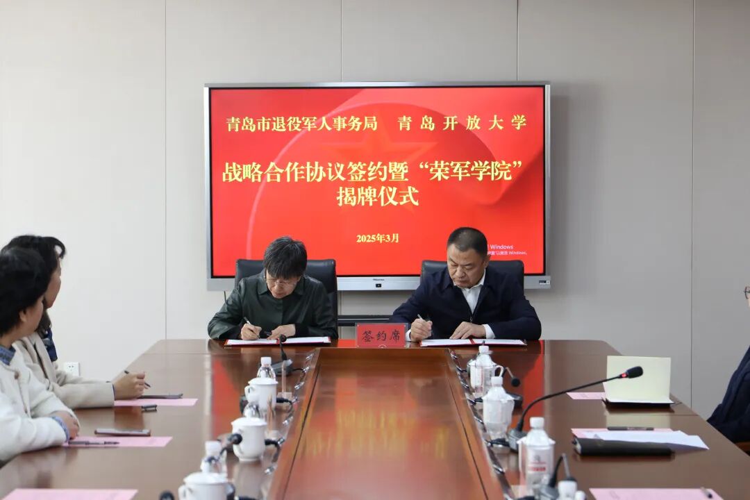 3月7日上午,青岛市退役军人事务局与青岛开放大学在青岛市退役军人人才开发基地举行战略合作协议签约暨“荣军学院”揭牌仪式,进一步提升现役军人、退役军人的职业技能和就业创业能力。