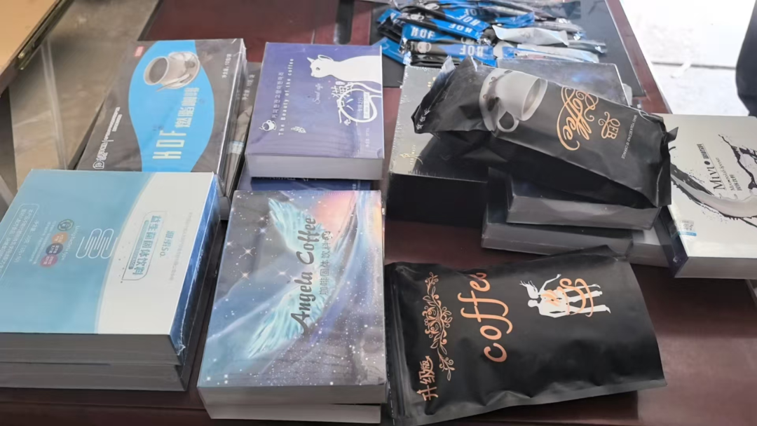 兰州市公安局安宁分局治安管理大队副队长马治宇:“库房里有塑封机、快递打码机,还有所谓‘咖啡’包装外面的防伪码。也就是说,上家给他提供包材、‘咖啡’,他进行包装、塑封,外面再贴上所谓‘防伪标志’,让消费者相信这是‘正品’。”