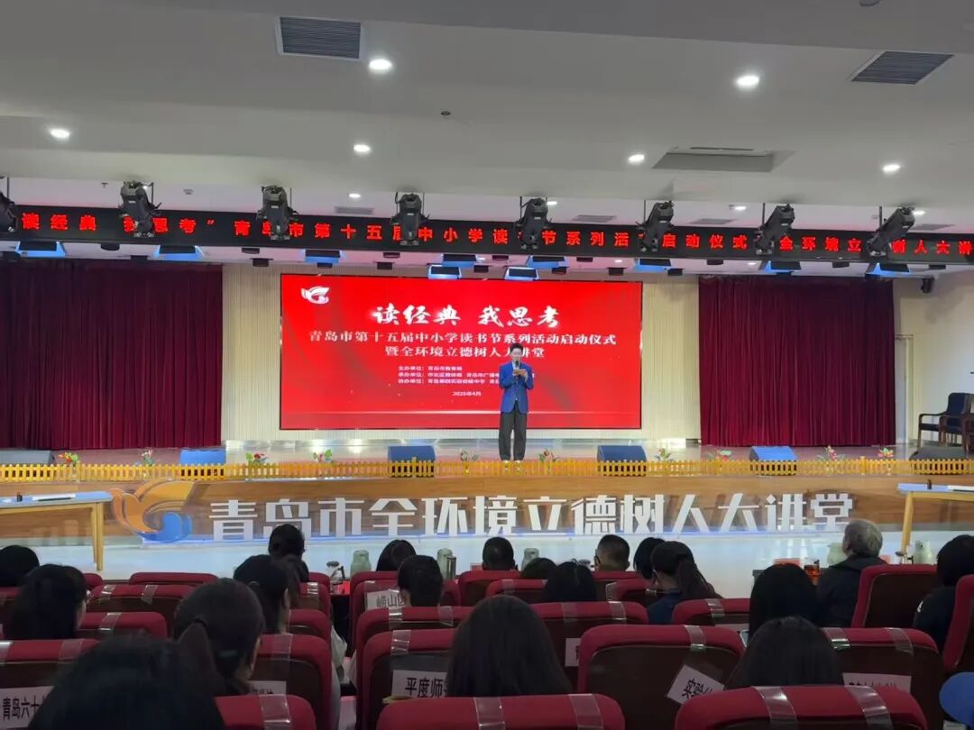 4月28日,由青岛市教育局主办的“读经典 我思考”青岛市第十五届中小学读书节系列活动启动仪式暨全环境立德树人大讲堂在青岛第四实验初级中学举行。
